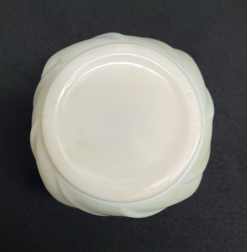 The C.F. Monroe Co. Wave Crest Hand Painted Daisies Opal Glass Dresser Box is a charming trinket box with a floral pattern hand-painted on pale blue glass. The round shape and Victorian style add a touch of elegance to any room decor. This decorative piece has a diameter of 3.25 inches and a height of 2.75 inches, making it a unique addition to any collection of decorative pottery and glassware.