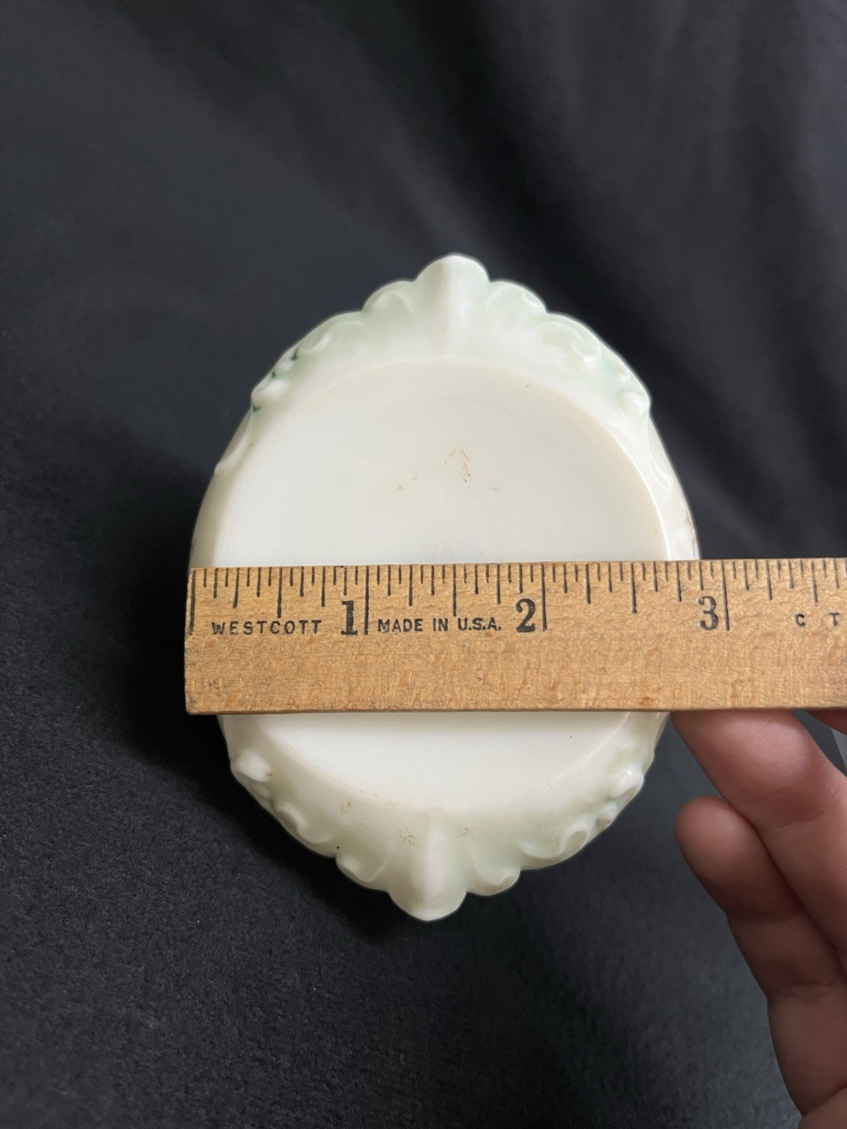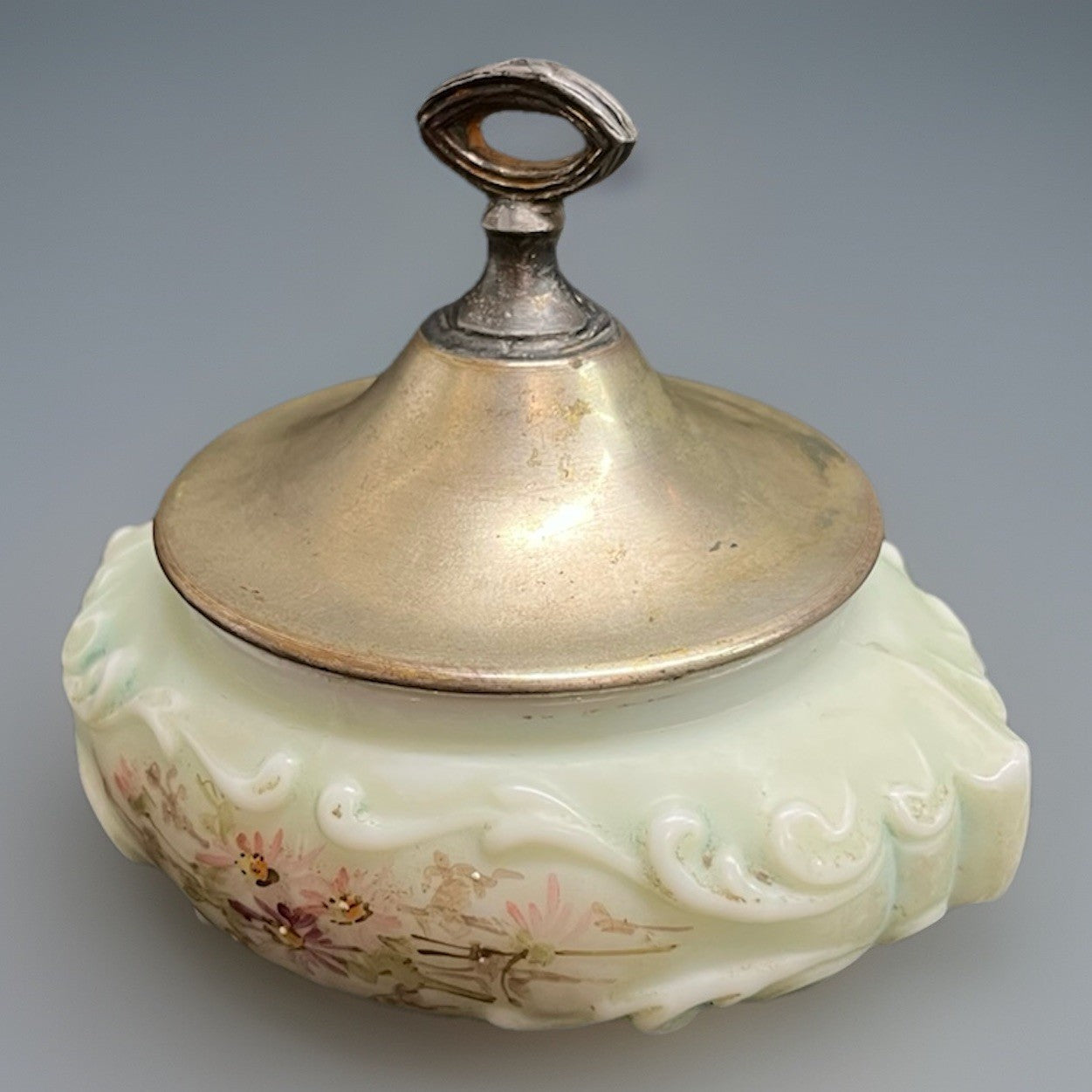 C.F. Monroe Co. Wave Crest Hand Painted Opal Glass Dresser Dish with Lid 4"