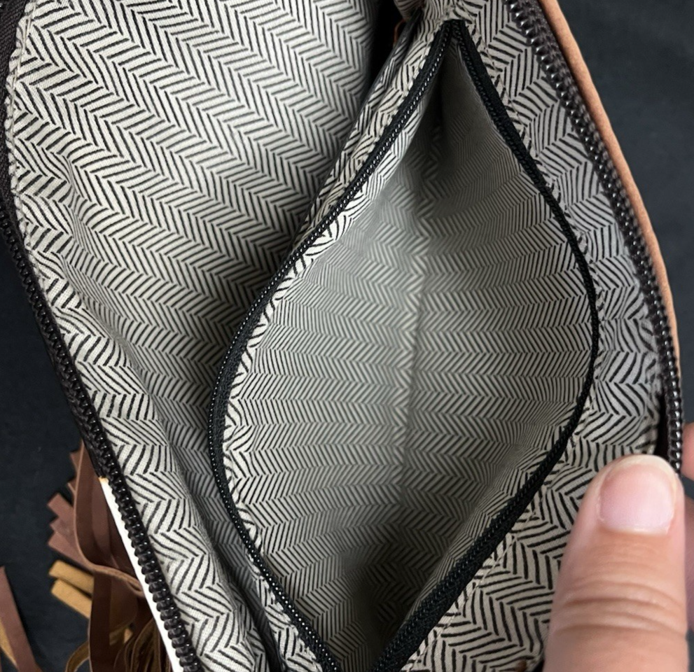 Cow Print Tassel Hand Clutch with Braided Bangle 10.75"