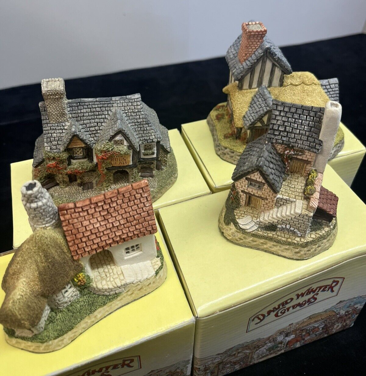 The product is a lot of 4 David Winter cottages, including the Cobbler, Hogs Head Beer House, The Pottery, and Cartwrights cottages.