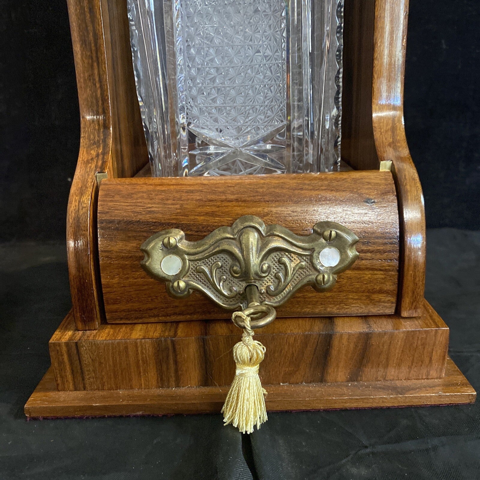 ENGLISH ROSEWOOD BRASS-MOUNTED TANTALUS SINGLE CUT GLASS DECANTER LIQUOR CADDIE