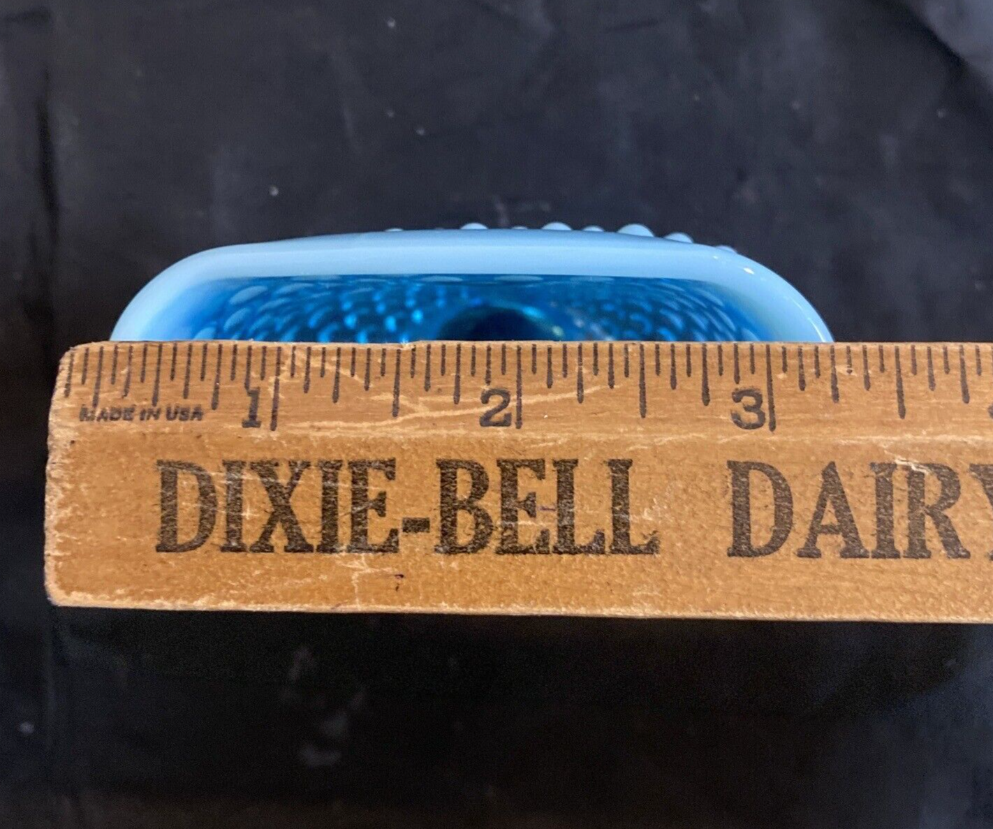 Offered for sale is a FENTON BLUE HOBNAIL OPALESCENT MINI FOOTED FAN VASE, PRODUCED FROM 1940 TO 1952. Excellent , H 3 3/4 × 3 1/4 "W.