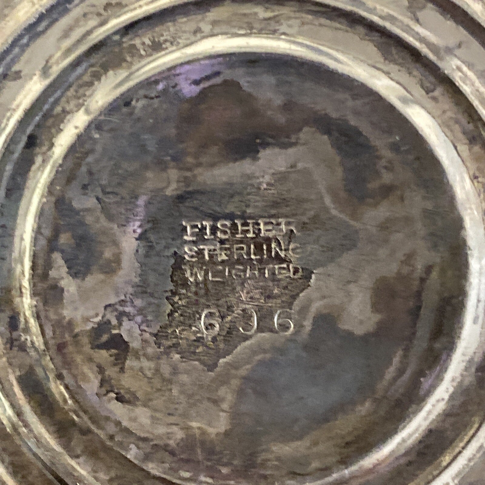 Offered for sale is a weighted Fisher Silversmiths sterling silver bud vase. The vase is in the pattern "606" and is 6 1/2 inches in height. It weighs 104 grams in total weight.