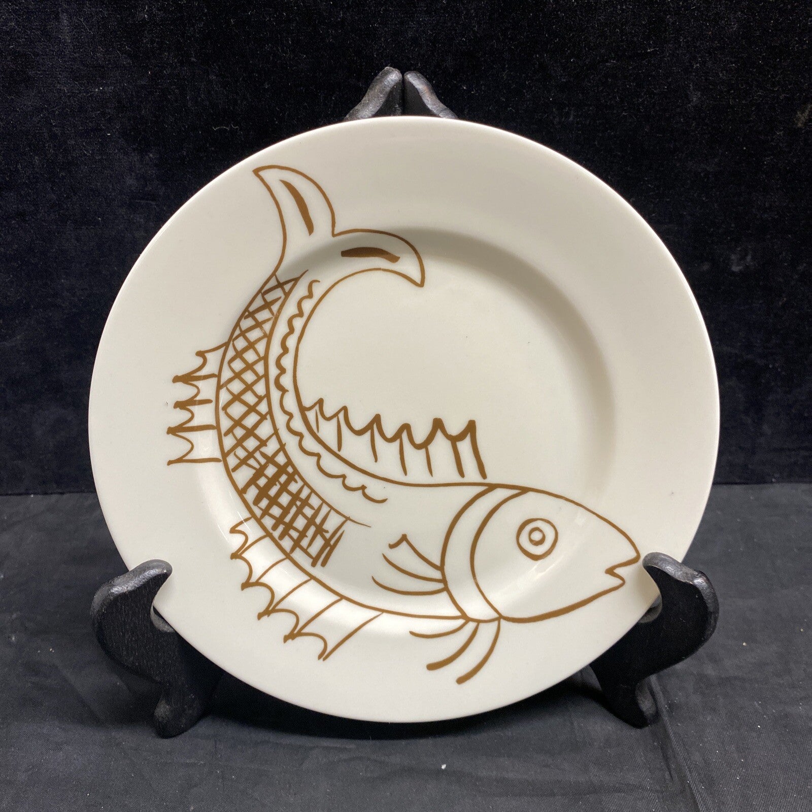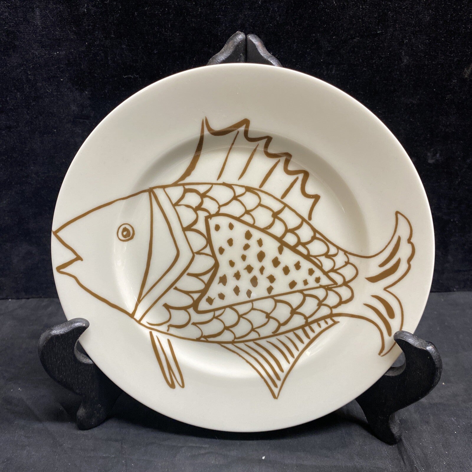 Offered for sale is this beautiful Fitz & Floyd salad plate in the pattern "Les Fish Brown". The ceramic plate 7 1/2 inches in diameter.