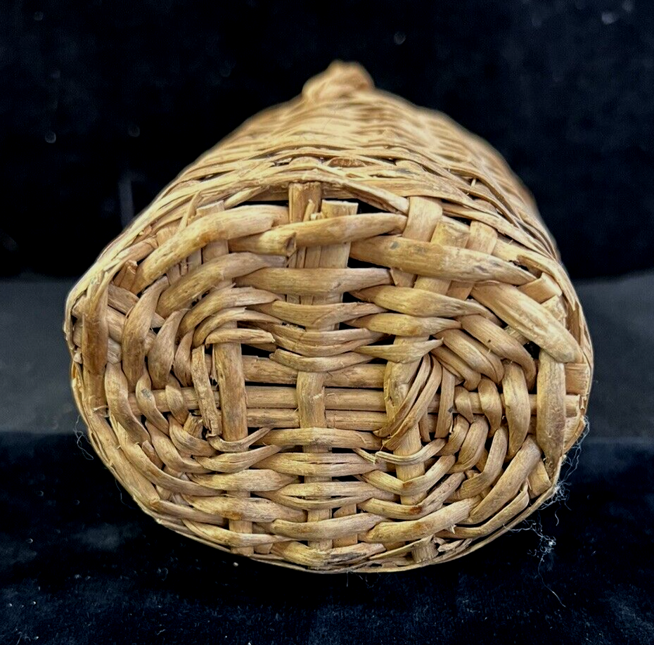 FRENCH ANTIQUE DEMIJOHN WICKER BOTTLE 11", GREEN GLASS, MADE IN FRANCE