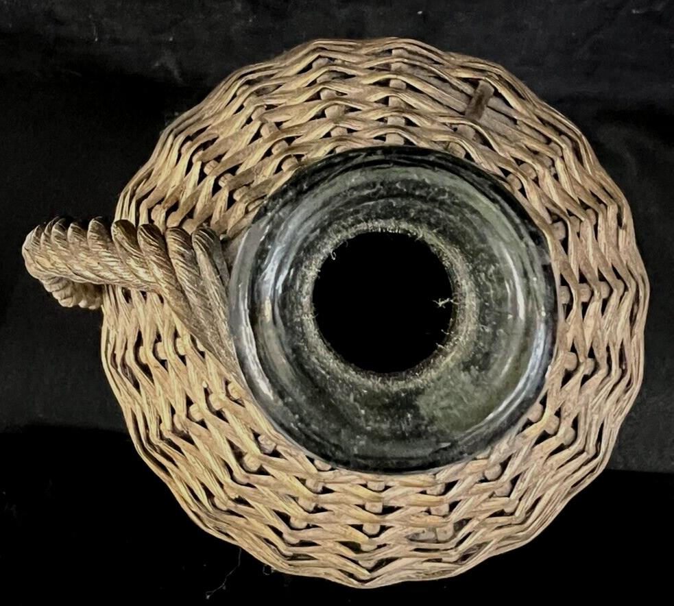 French Glass Woven Wicker Demijohn Bottle Rustic Farmhouse Wickerware Antique.