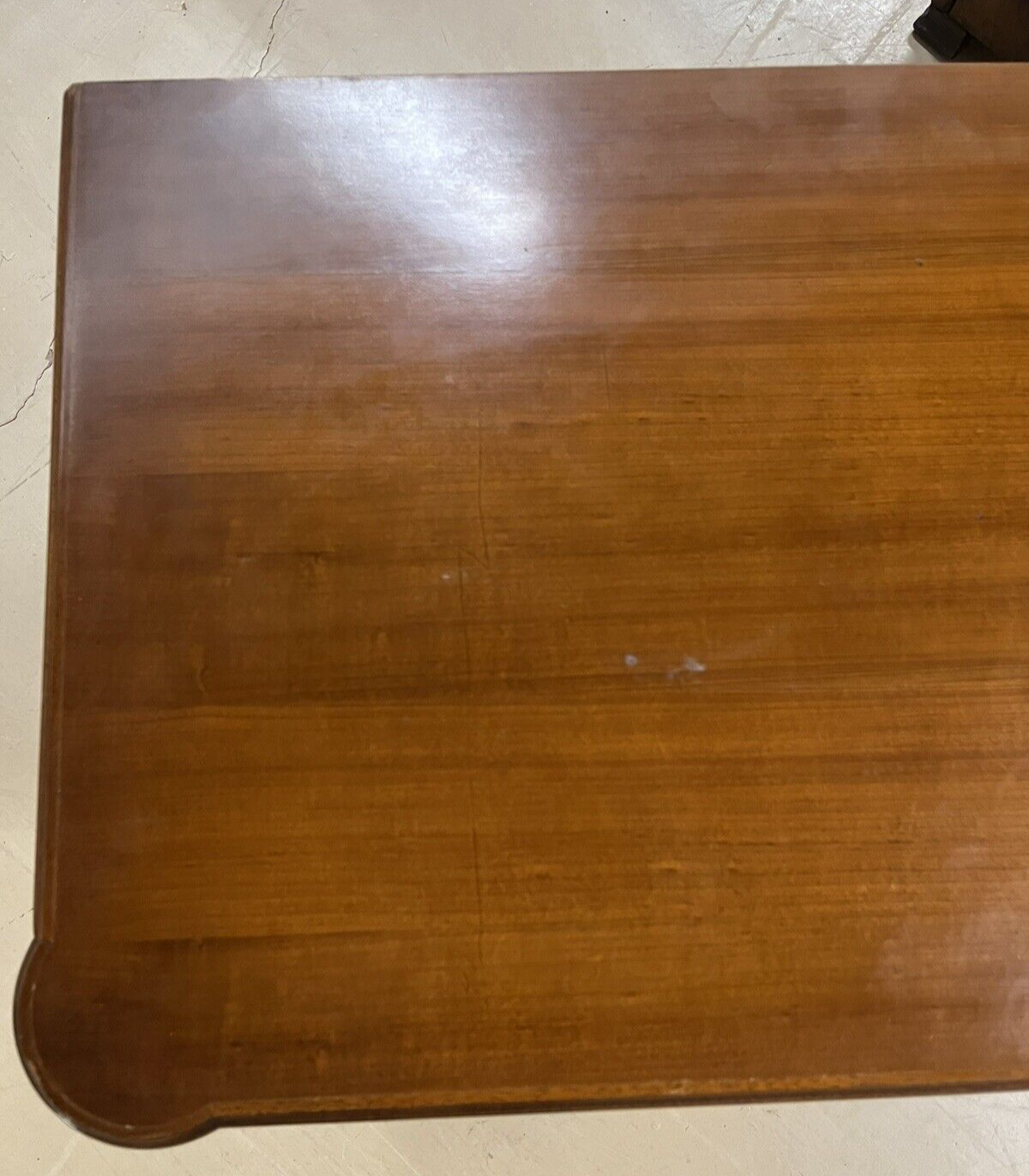 This is a French Louis XVI style chest of drawers made of cherry wood, with three drawers and brass ormolu pulls. The piece dates back to mid 20th century and is in excellent condition.