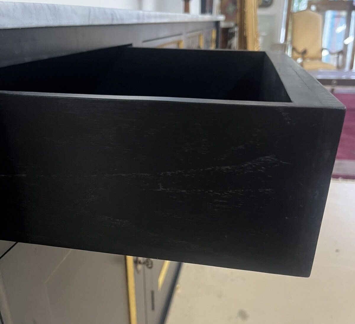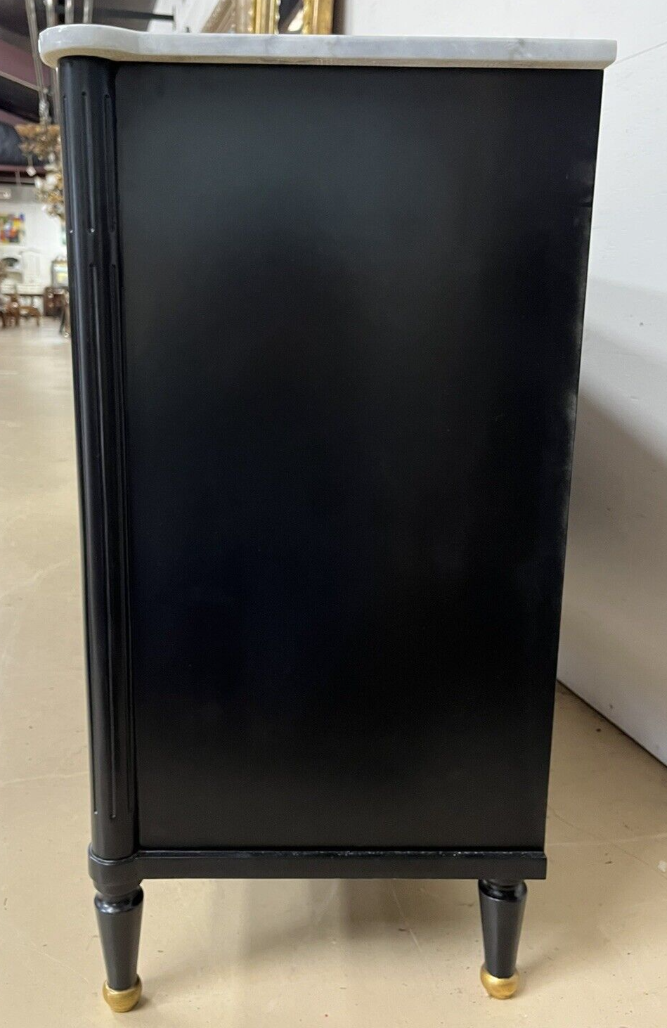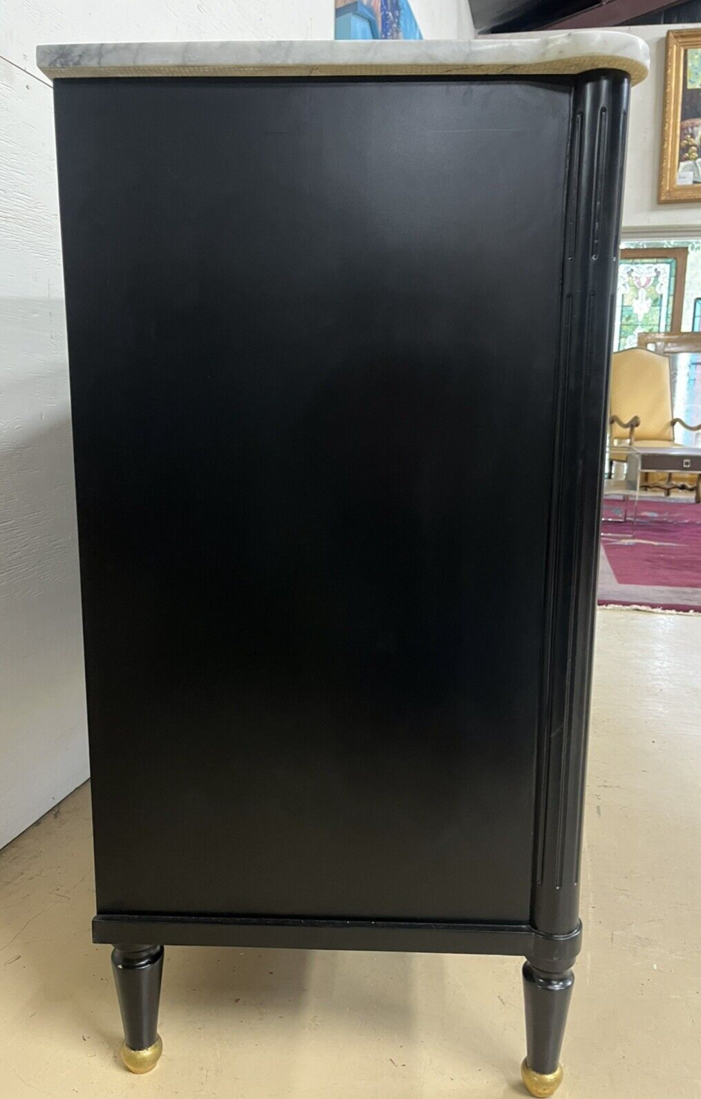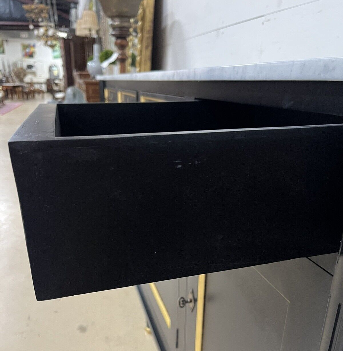 French Louis XVI Marble Top Black & Gold Cabinet Sideboard Cabinet Enfilade