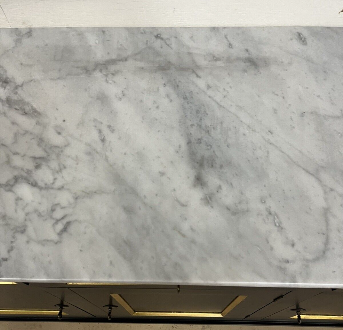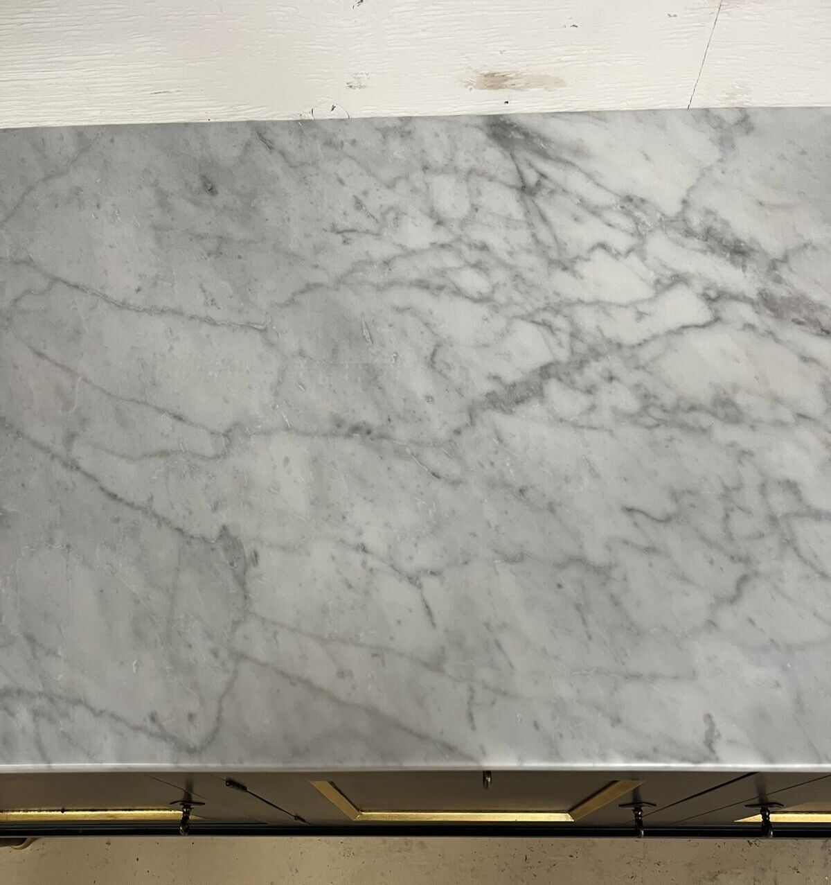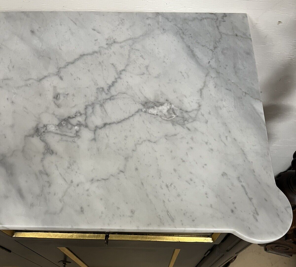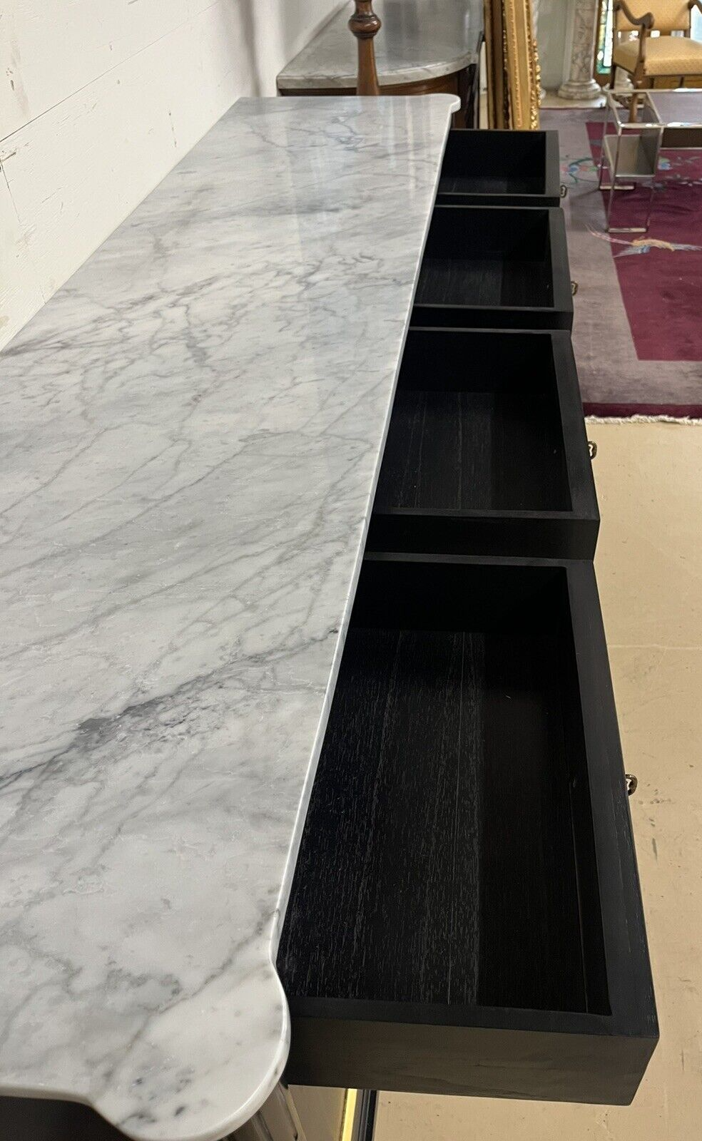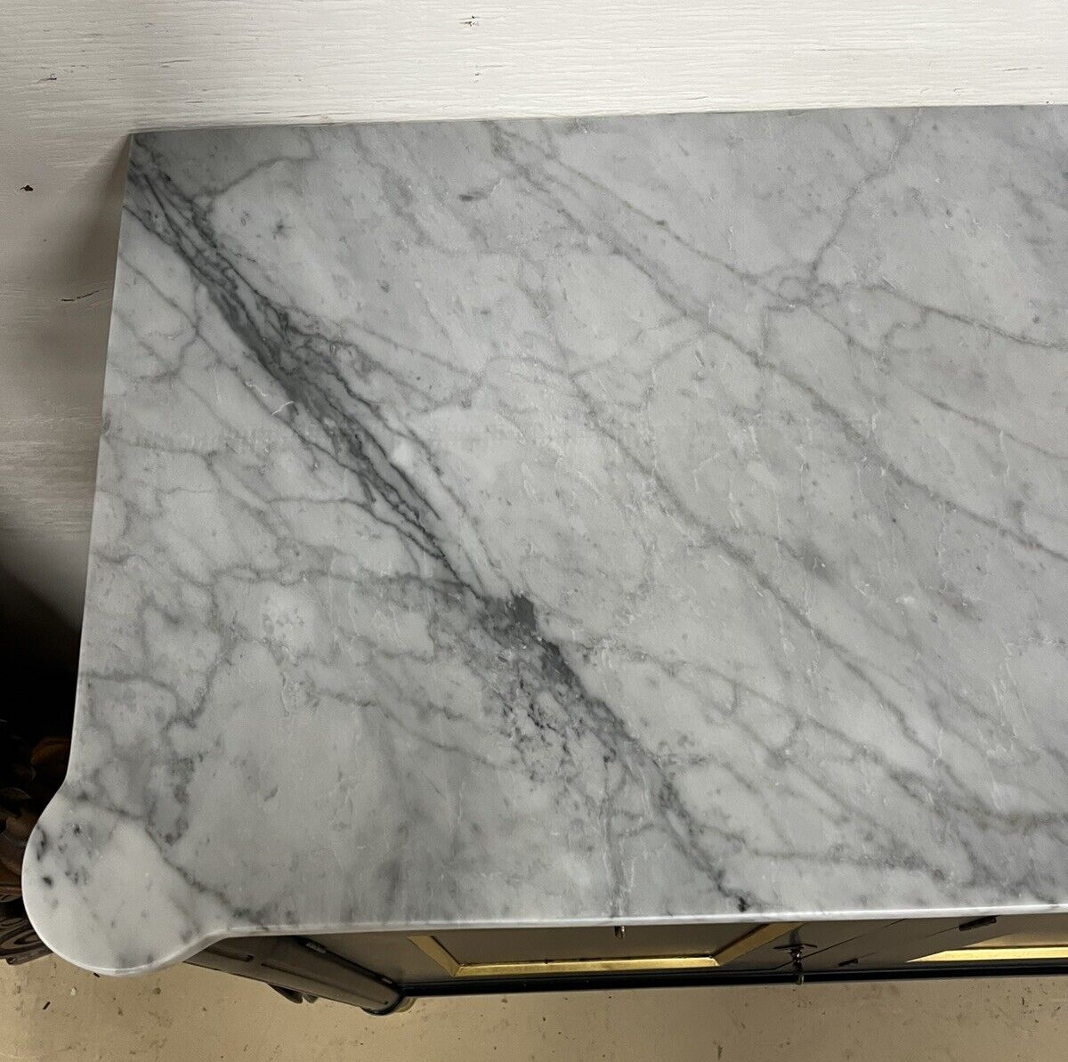 French Louis XVI Marble Top Black & Gold Cabinet Sideboard Cabinet Enfilade
