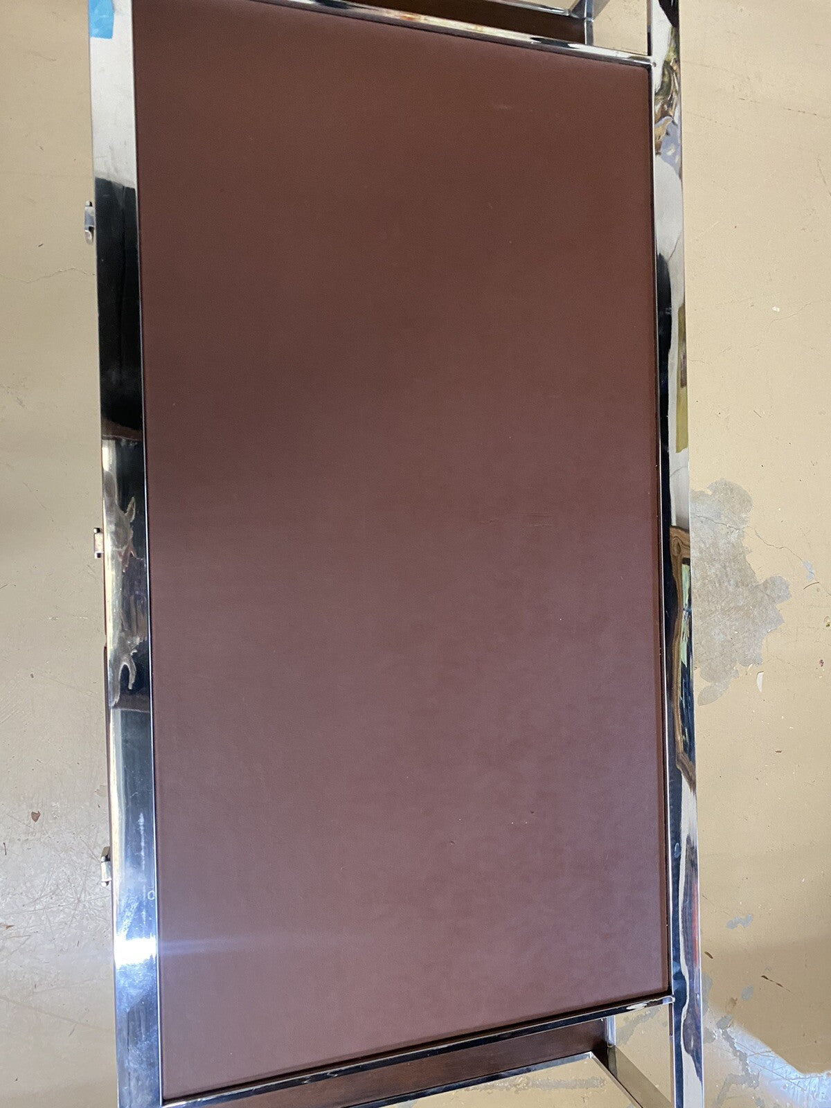 FRENCH MODERN CHROME & LEATHER COFFEE TABLE