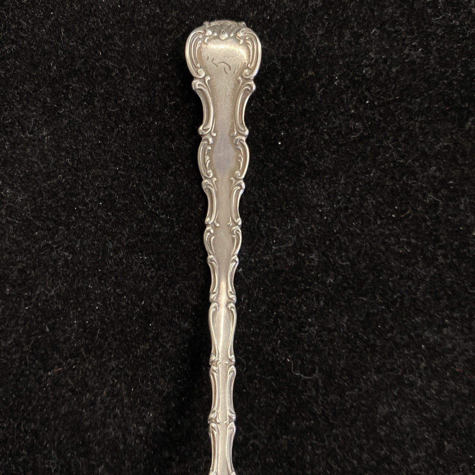 Jelly Ladle. Crafted from high-quality Sterling Silver (.925) and designed in the Strasbourg pattern, this exquisite ladle is perfect for any collection of flatware and silverware. The intricate pattern features delicate floral details that are sure to impress any antique enthusiast. Whether you're a collector or just looking for a special piece to add to your table setting, this ladle is a must-have.