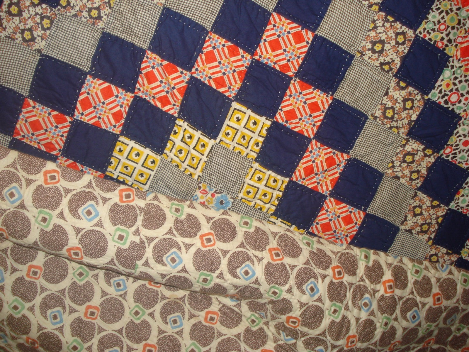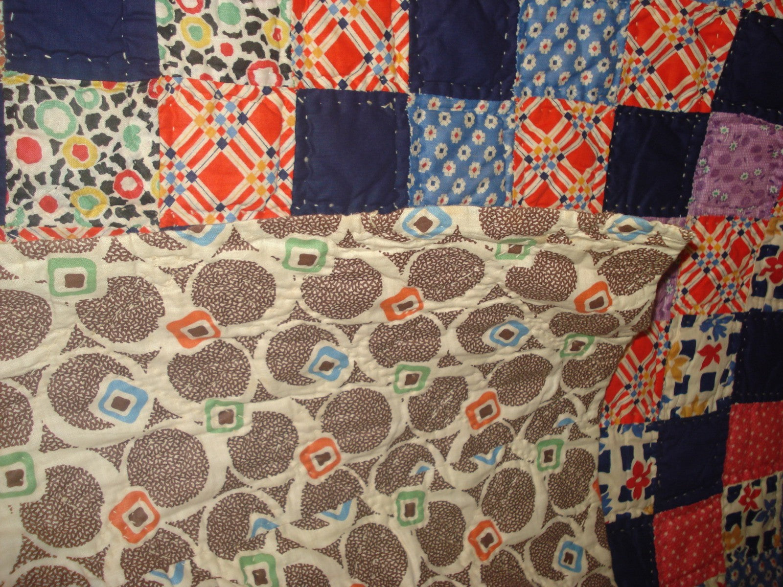 QUILT / BEDSPREAD / COMFORTER WITH GEOMETRIC FABRIC BACKING .