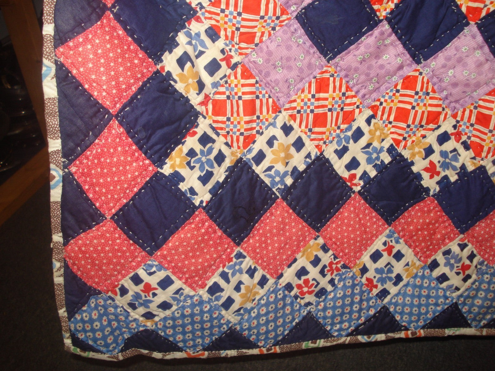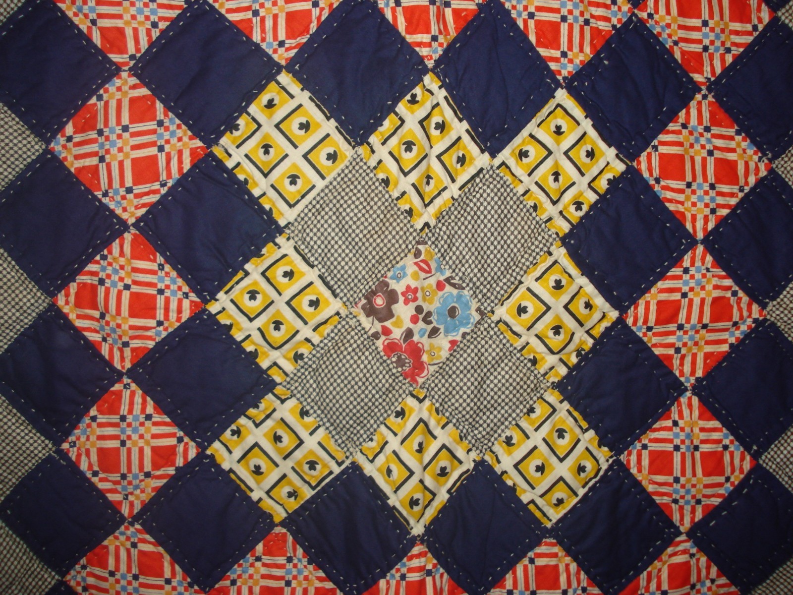 HANDMADE & HAND STITCHED DIAMOND PATTERN PATCHWORK