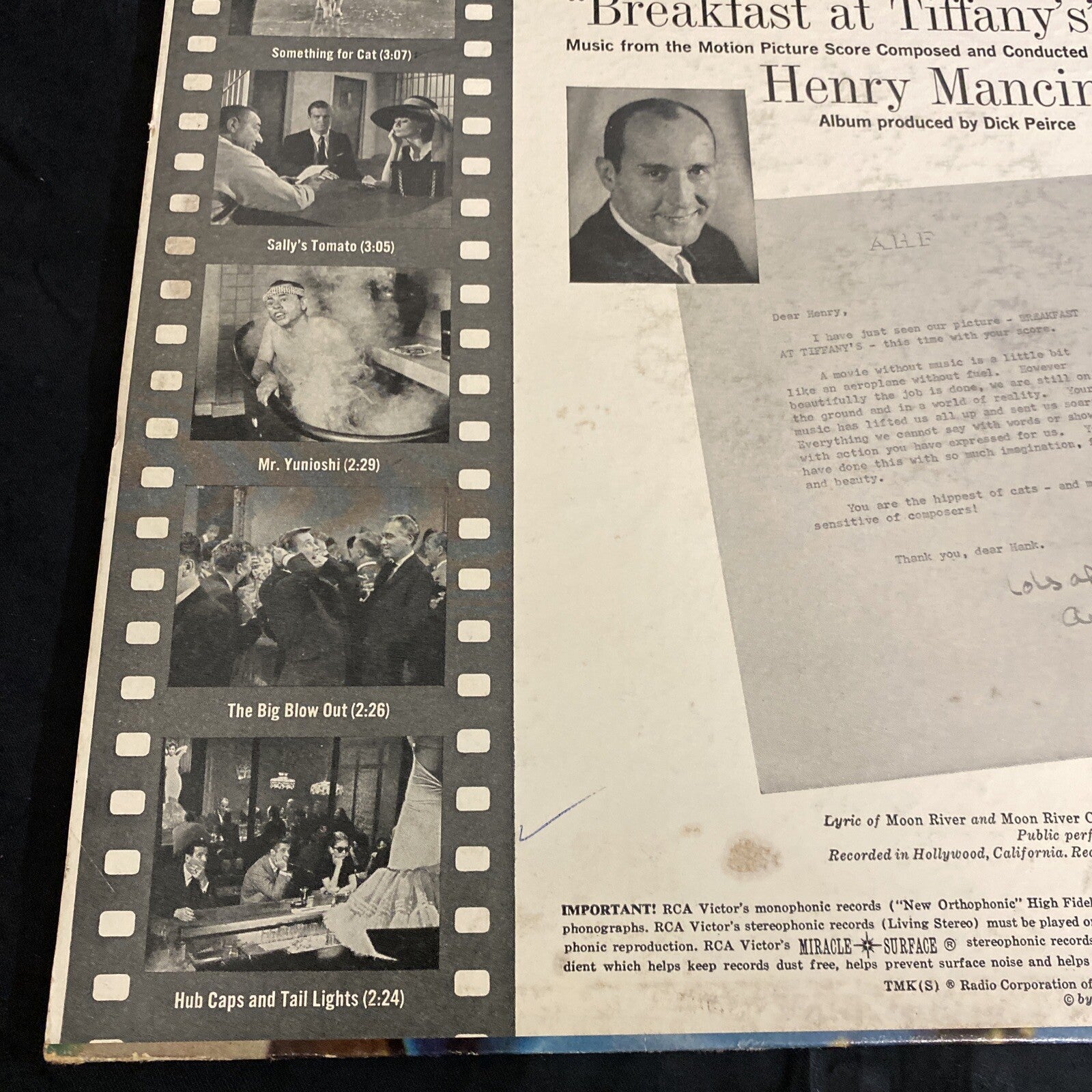 HENRY MANCINI-Breakfast At Tiffany's VINYL 12” LP 1961 RCA LSP-2362 NM/VG
