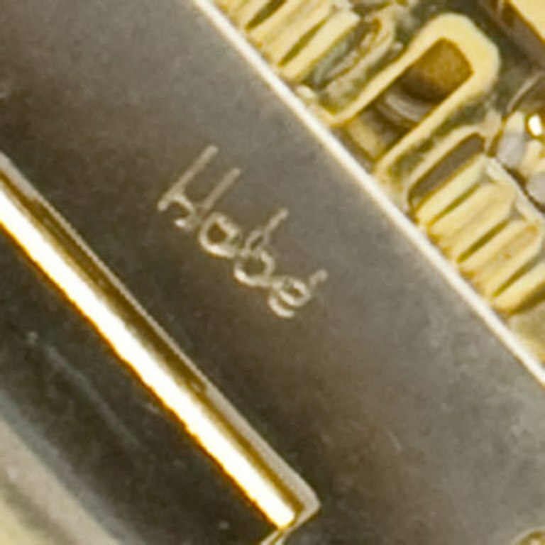 This Hobé bracelet has gold-tone links edged with prong-set diamanté. Alternating horizontal rows of pearls, and ruby and onyx bi-color glass beads dangle from this base. This lively bracelet closes with a concealed clasp. This piece is a fine example of 1950s Hollywood glam from the company's designers . L 6 7/8" x W1 1/8" First Dibs is asking $1125 for the exact bracelet that is 2" wide.