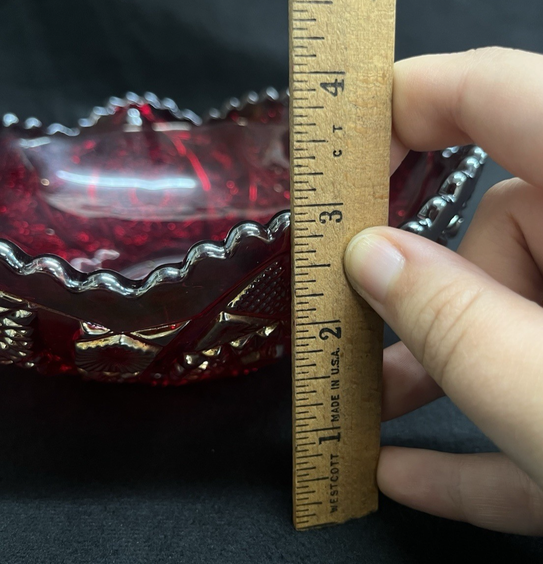 Imperial Glass OH Daisy & Button Golden Sunset Carnival Red Round Bowl 8"