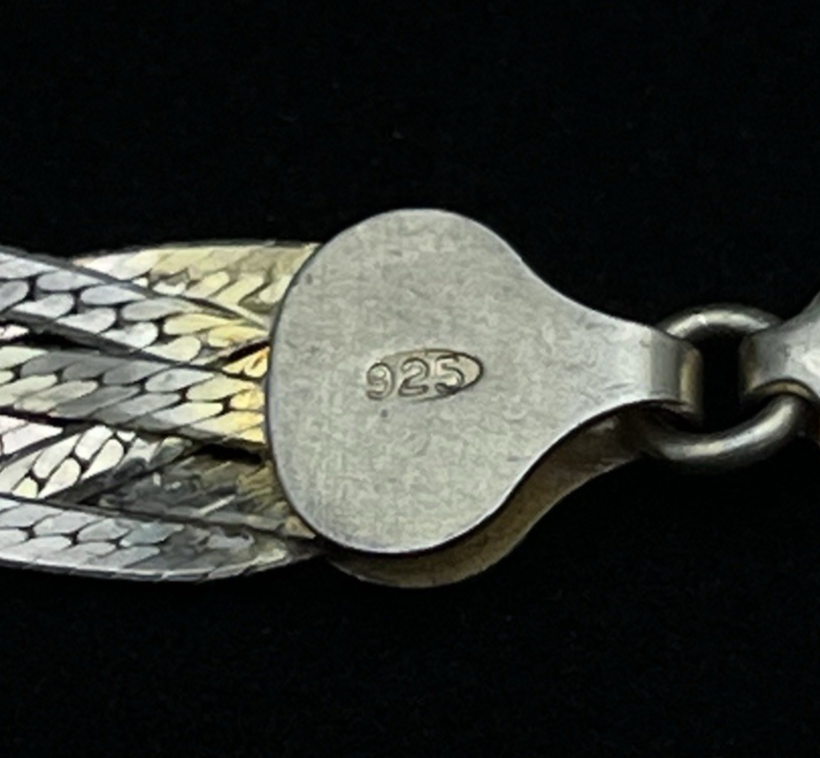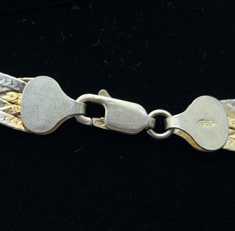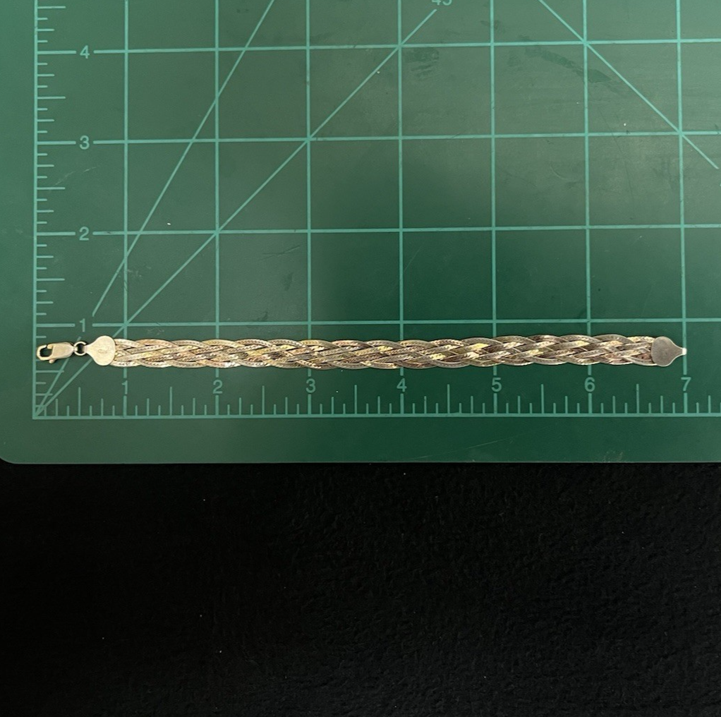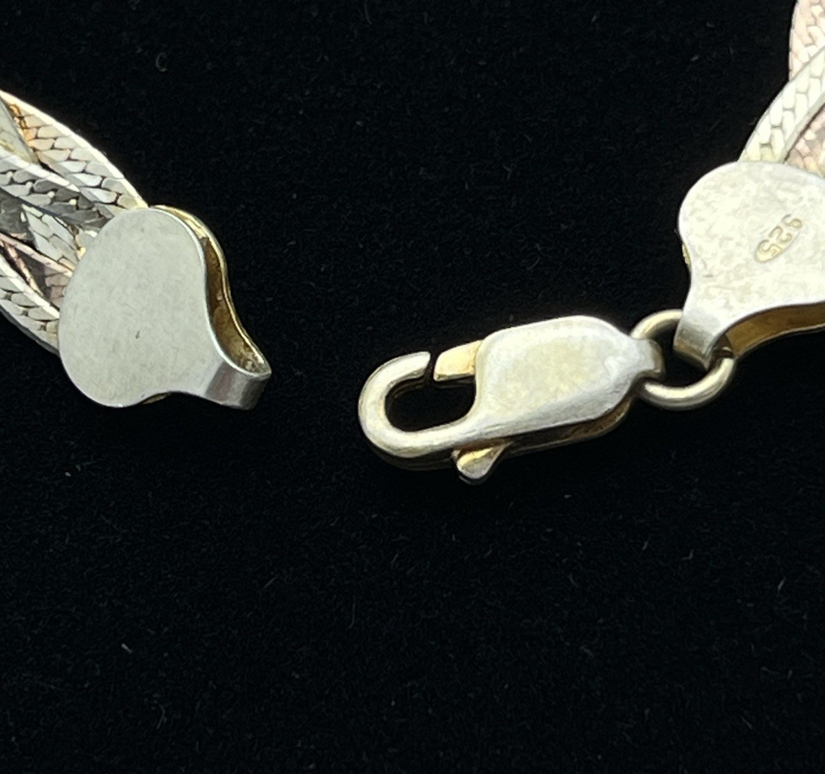 Italian FAS Sterling Silver 3-Tone Braided Herringbone Necklace & Bracelet 20 g