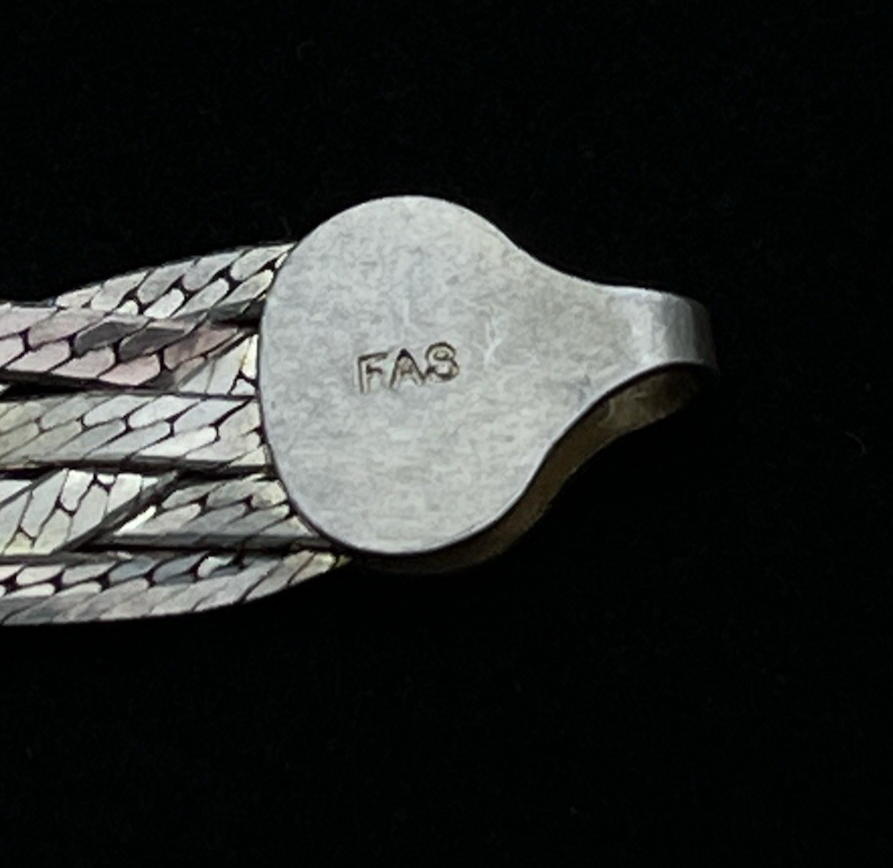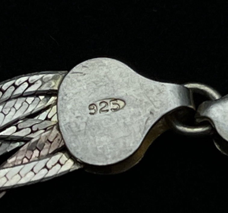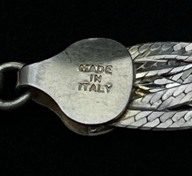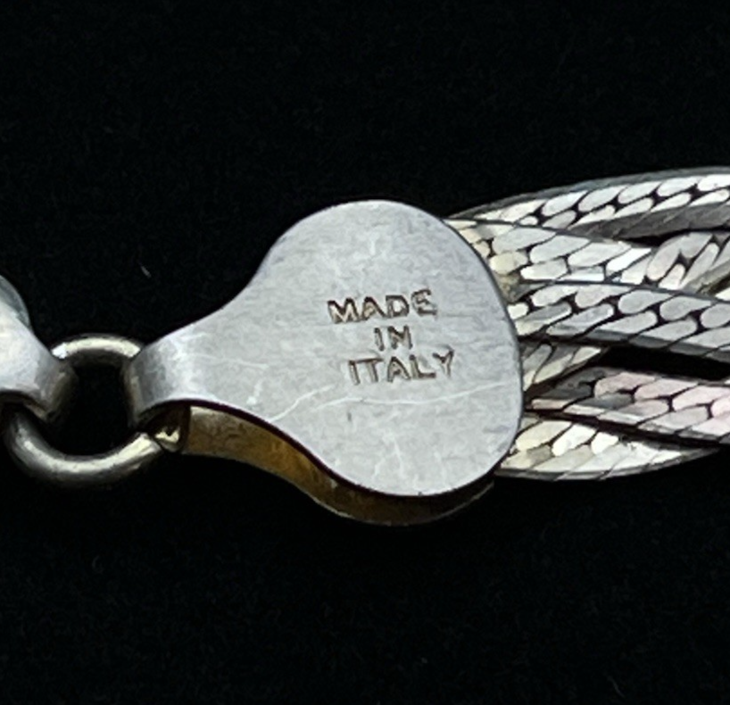 This Italian FAS Sterling Silver 3-Tone Braided Herringbone Necklace & Bracelet Set features a necklace with a length of 18 1/8 inches and a weight of 14.45g, along with a bracelet with a length of 7 inches and a weight of 5.84g. Made from sterling silver with a purity of 925, the set includes both the necklace and bracelet, making it a complete jewelry set. With no stone accents, this elegant set is perfect for adding a touch of sophistication to any outfit. Crafted in Italy, these pieces showcase the high quality and attention to detail that Italian fine jewelry is known for.