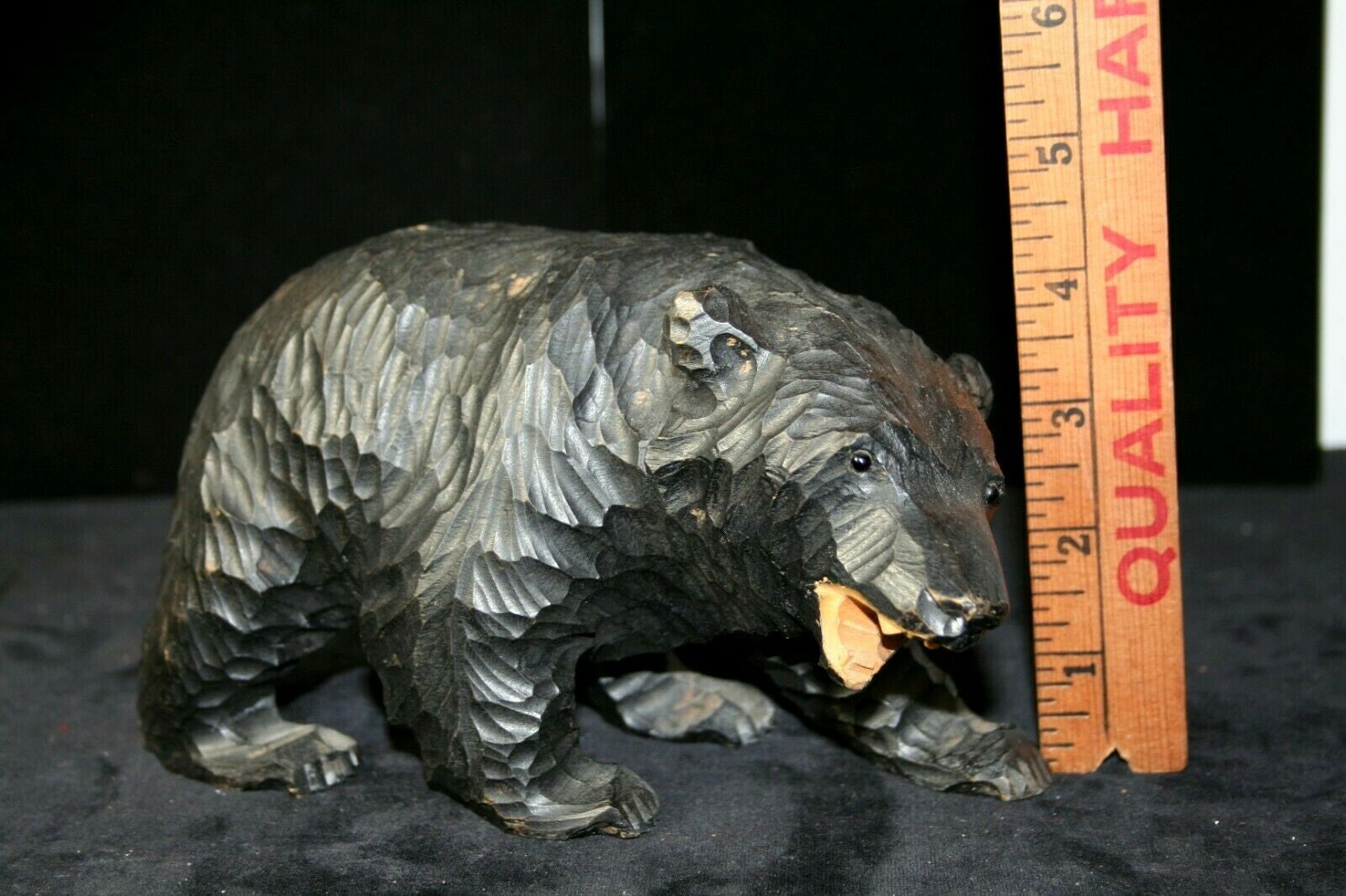 JAPAN: ANTIQUE KAMUY KUMA / BEAR / HOKKAIDO AINU WOODCARVING / GLASS EYES