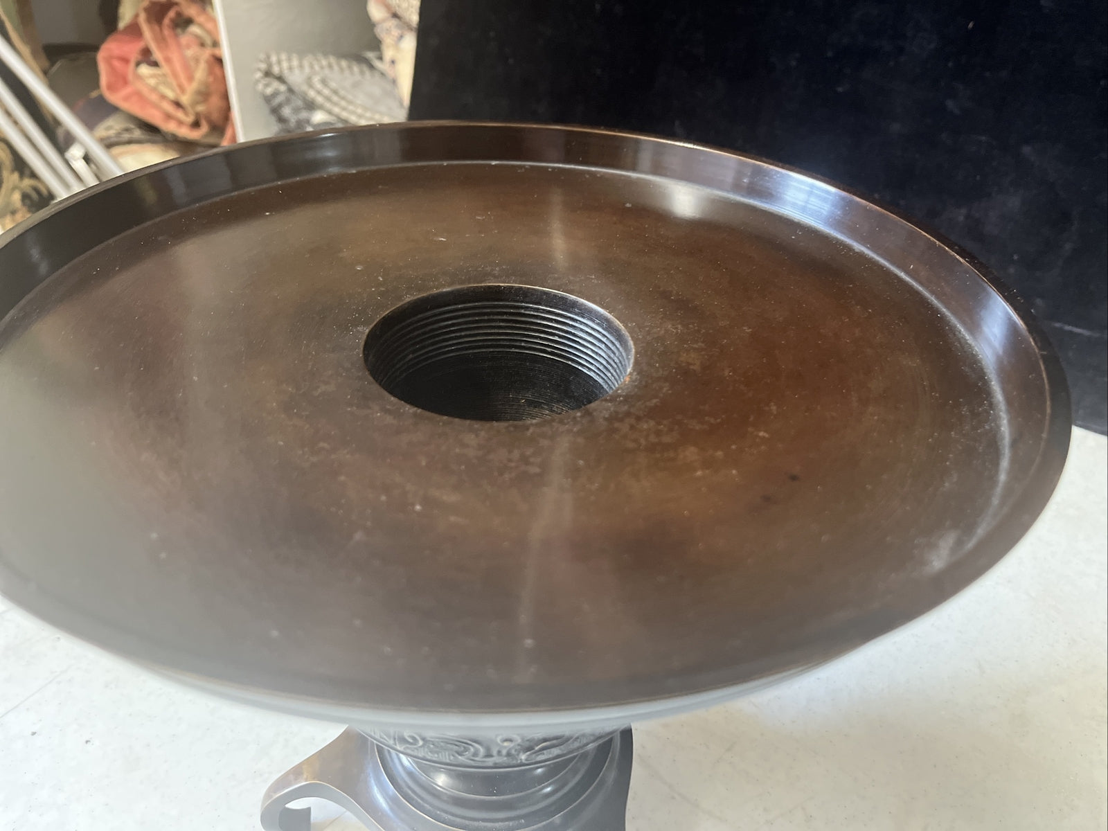 Japanese Bronze Lidded Ikebana Usubata Thin Flower Vase Incense Burner