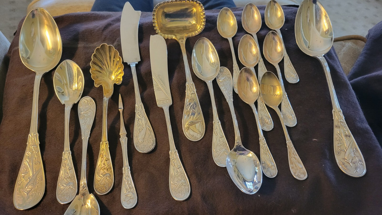 Stunning sterling silver Fish Knife measuring 7 1/4" in the pattern Japanese by Tiffany and Co. The handle of this piece features a lovely bird perched on a branch, surrounded by foliage. No monograms and excellent condition. We will be listing 21 more pieces of Tiffany Japanese and 61 pieces of Audubon. Please check it out!