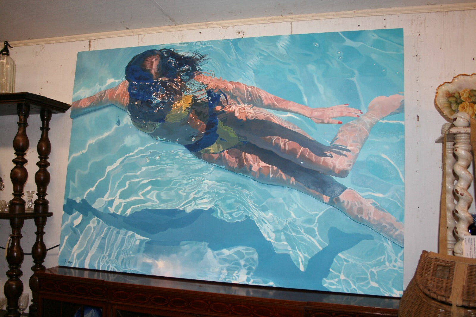 Jeannie Maddox Original Oil Painting "Masked Diver" 3D Gallery Wrap 70" x 48"