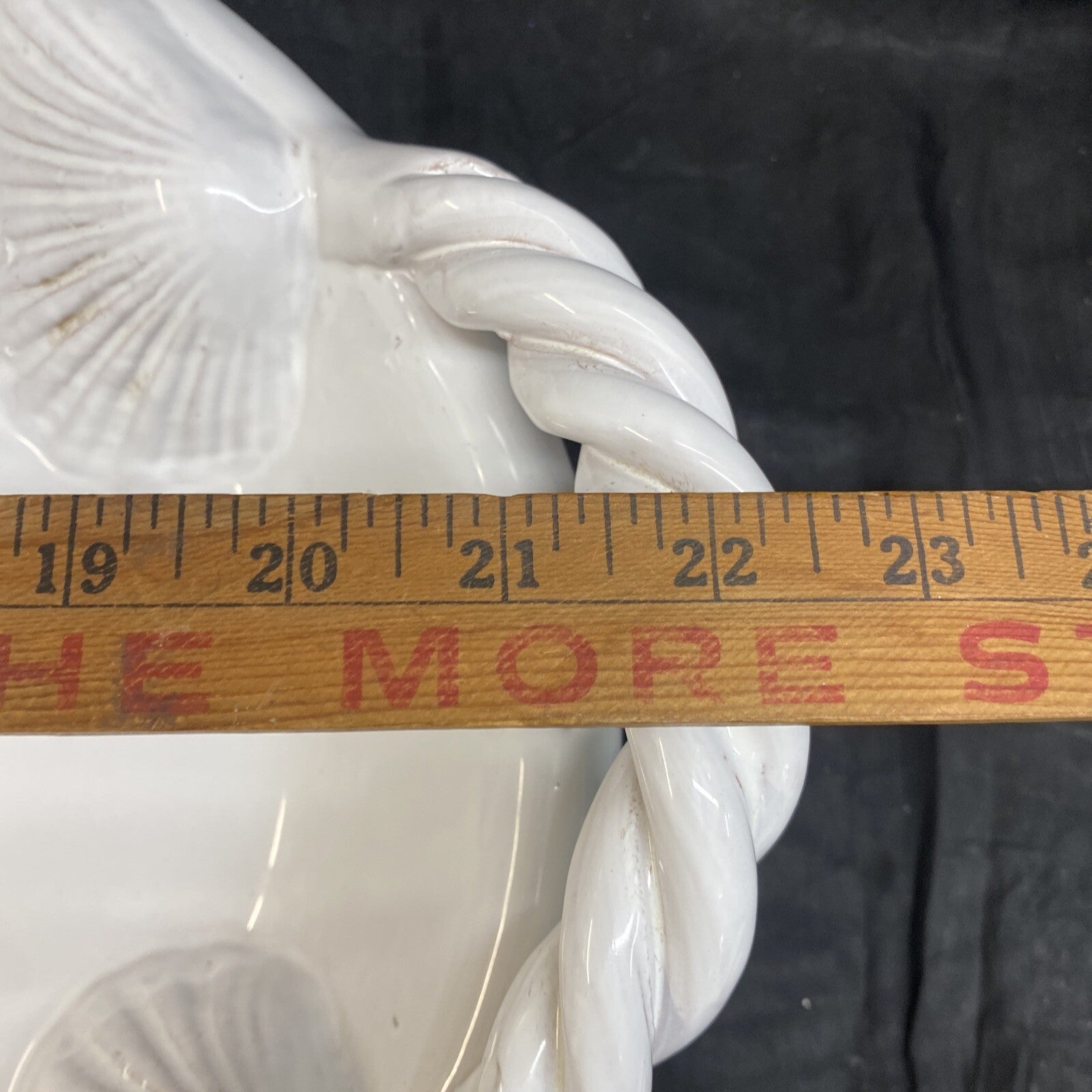 Large White Unmarked Seashell Rope Handle Serving Platter 57/60 Italy