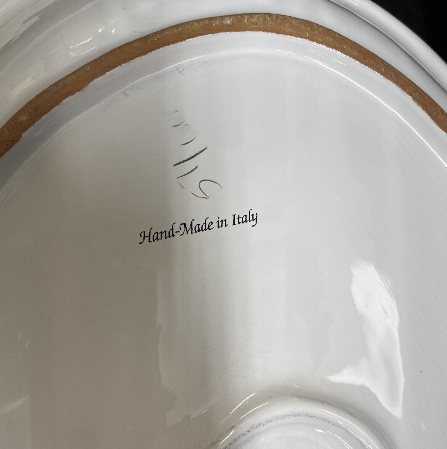 Offered for sale is this beautiful, unmarked serving platter. The platter has "57/60, Made in Italy" on its bottom. It has large seashells on each end of its handles, and the handles are in a rope pattern.