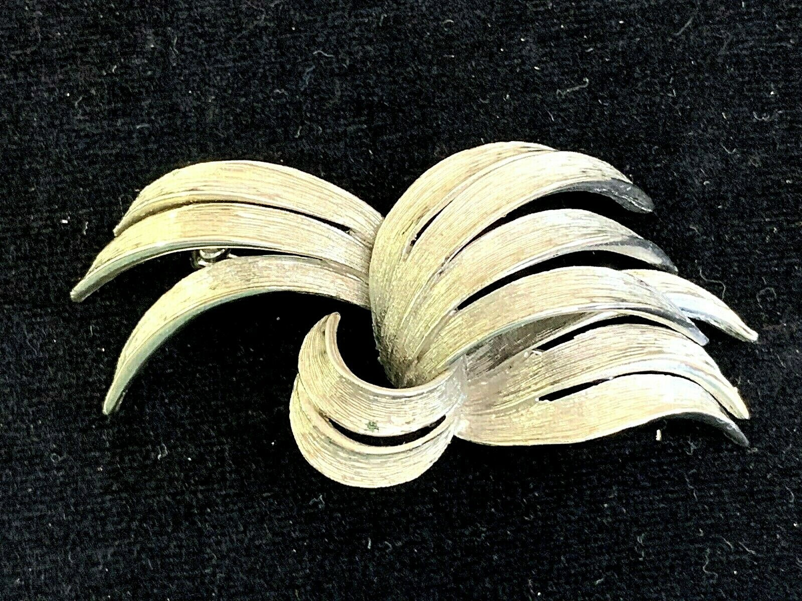 Large Retro "Alan J." Signed Flowing Silver Leaf Metal Brooch, 2.75" x 2". brushed & Frosty, 1960's