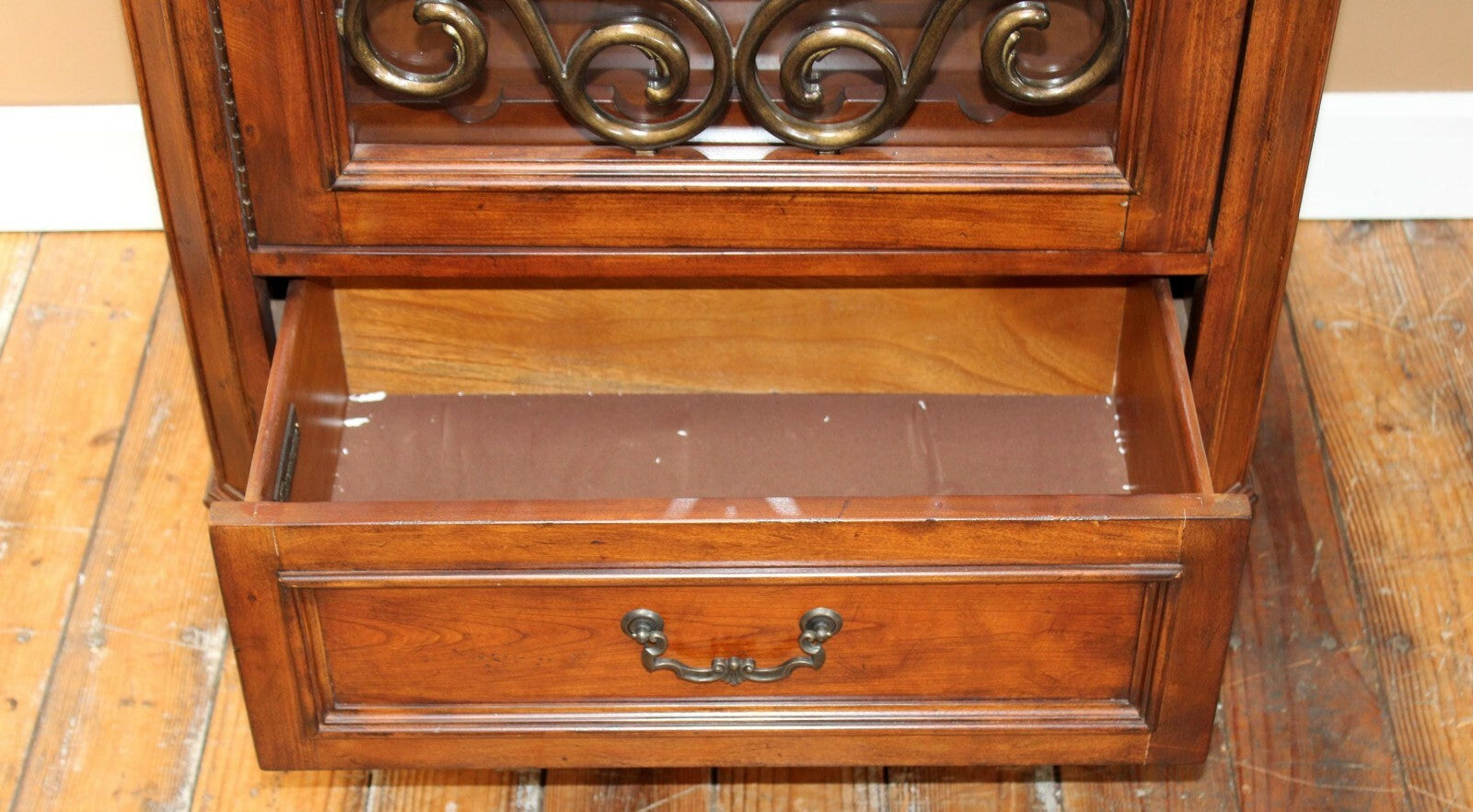 Cotswold Manor wine cabinet in mahogany with scrolled iron door. 78"h x 35"w x 17 1/2"d