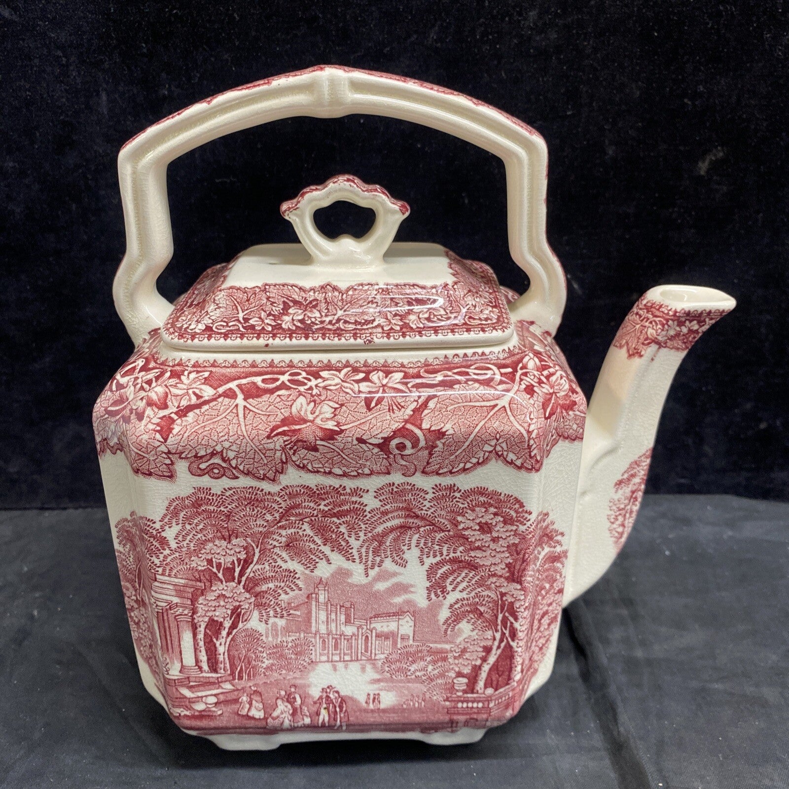Mason's Vista Pink Kettle Teapot & Lid 9" Holds 7 Cups