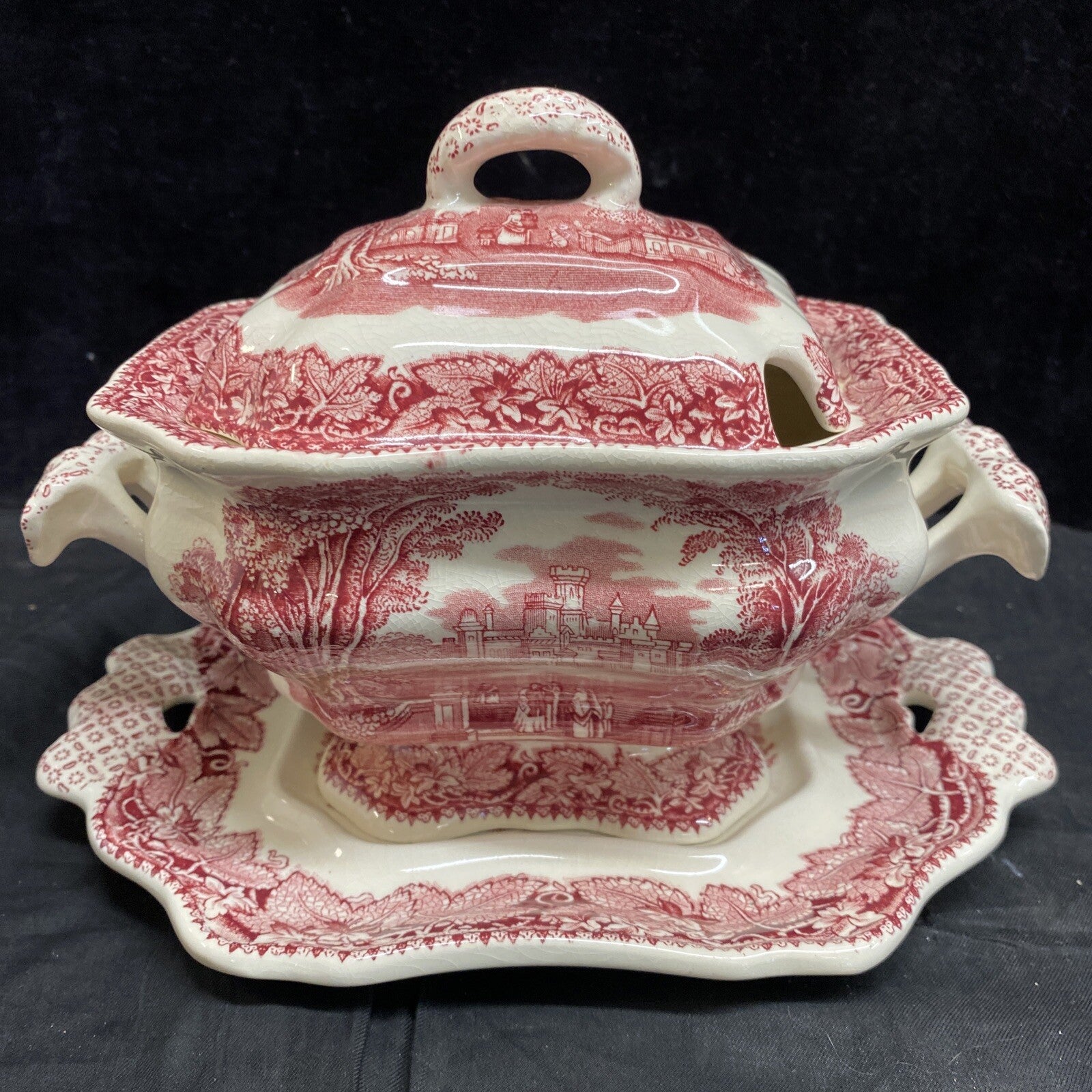 Mason's Vista Pink Small Sauce Boat with Underplate 6 1/2"