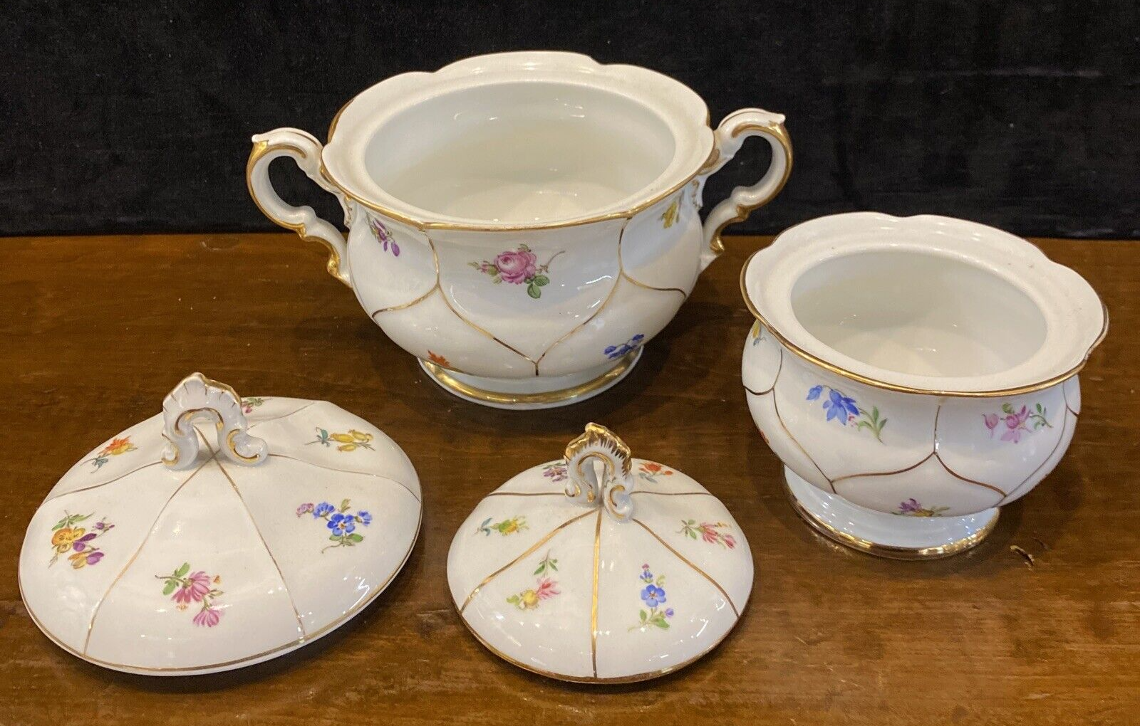 Meissen “Strewn Flower” Teapot Creamer Sugar Coffee & Tea Service Set of 7