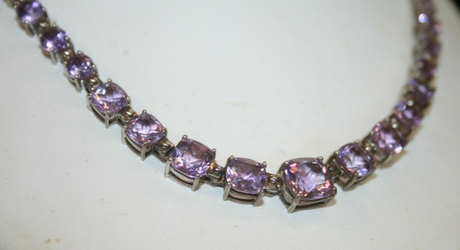 Natural Amethyst purple graduated cut Sterling Silver 18" Necklace Thailand. weighs 44 grams. Beautiful!