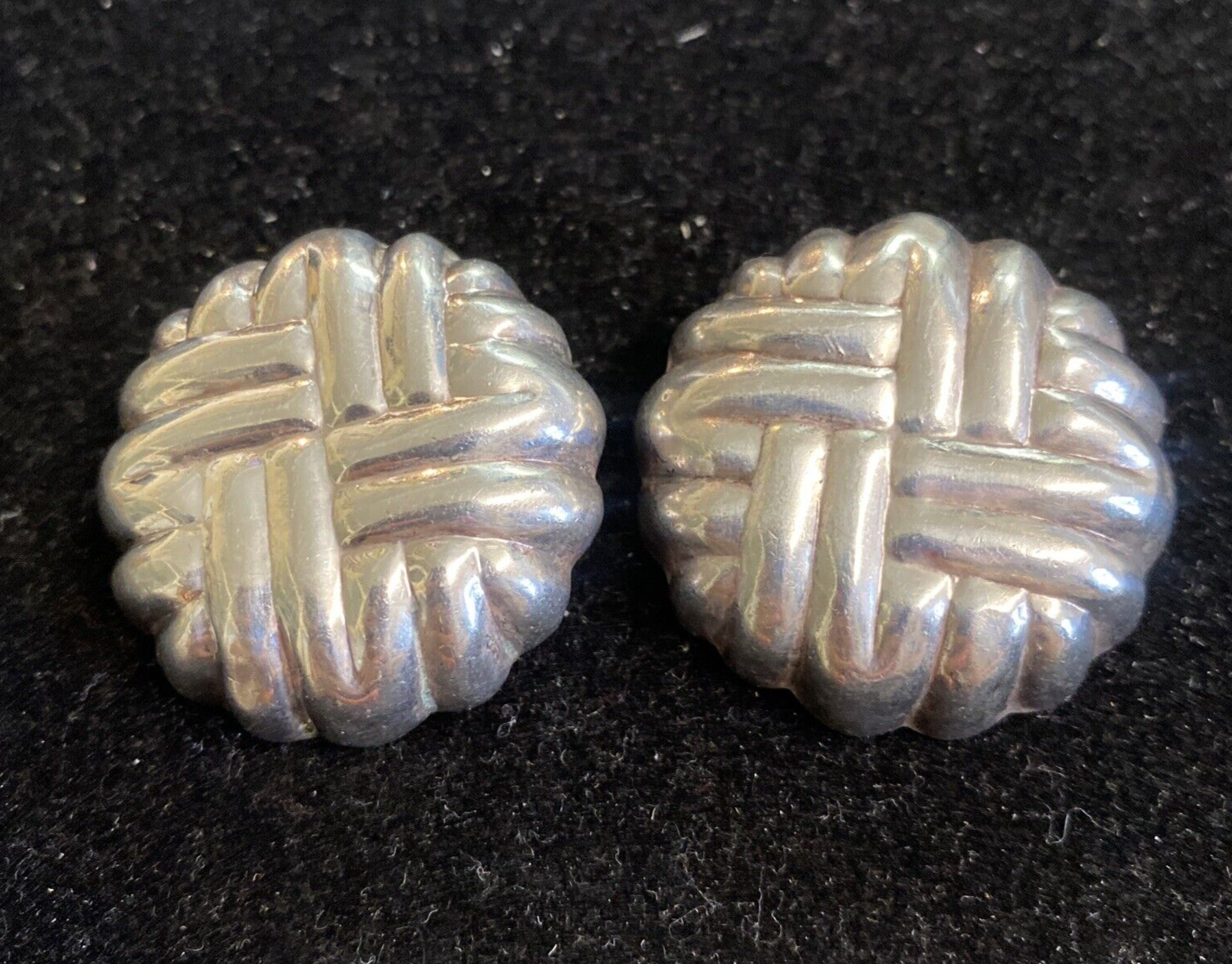 Offered for sale is a pair of Sterling Silver 925 clip on earrings. Each earring measures 1 1/4" in diameter and the have a total weight of 16.4 grams.