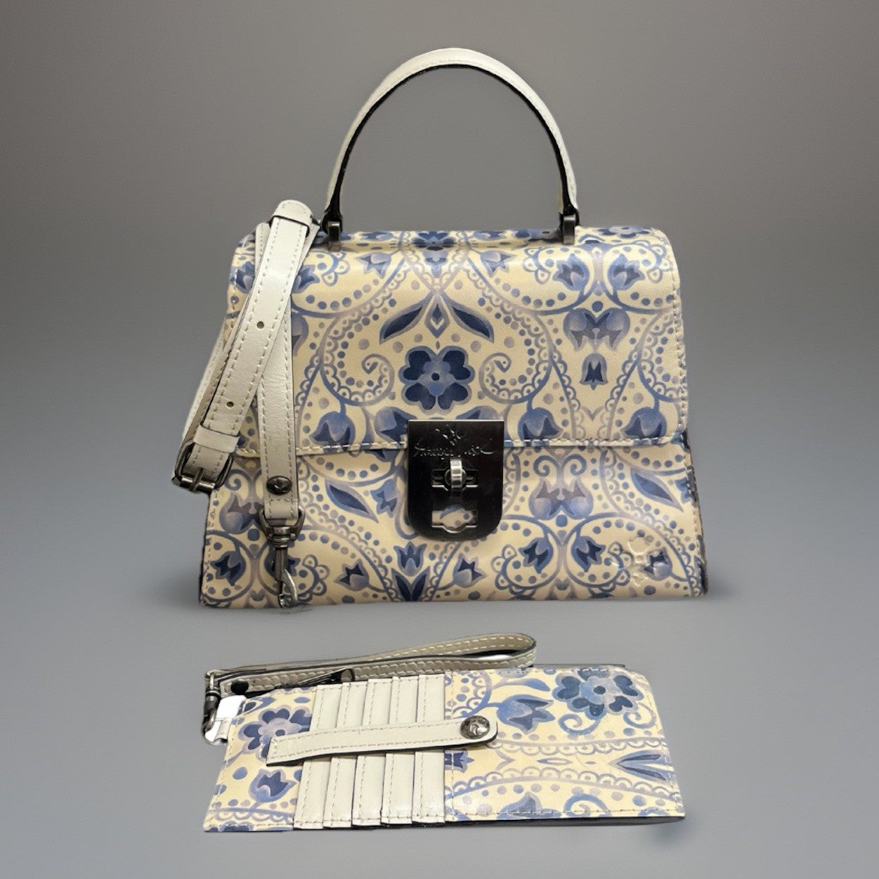 Patricia Nash Chauny Leather Crossbody Satchel Italian Folklore w/ Strap/Wallet