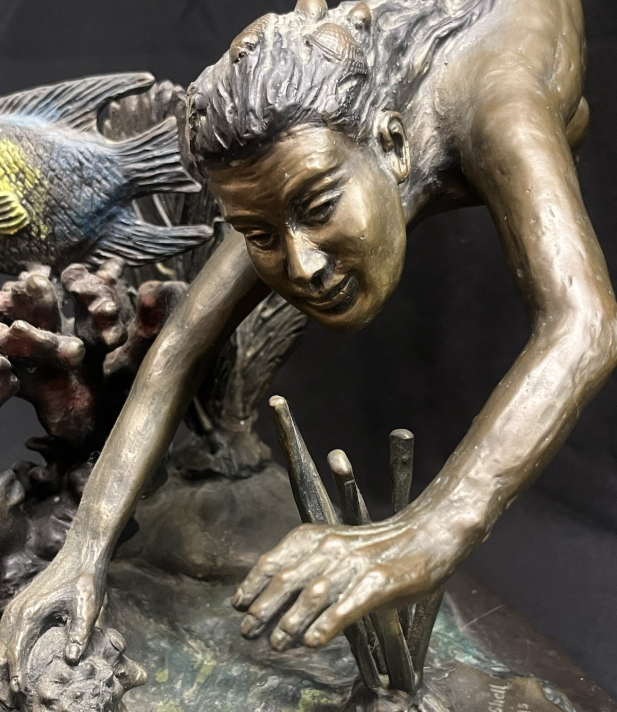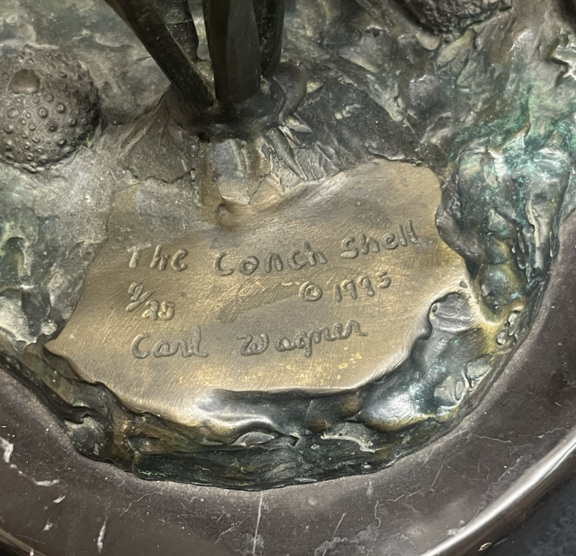 PB7 "The Conch Shell" by Carl Wagner Bronze Statue w/ Marble Base 23.25"