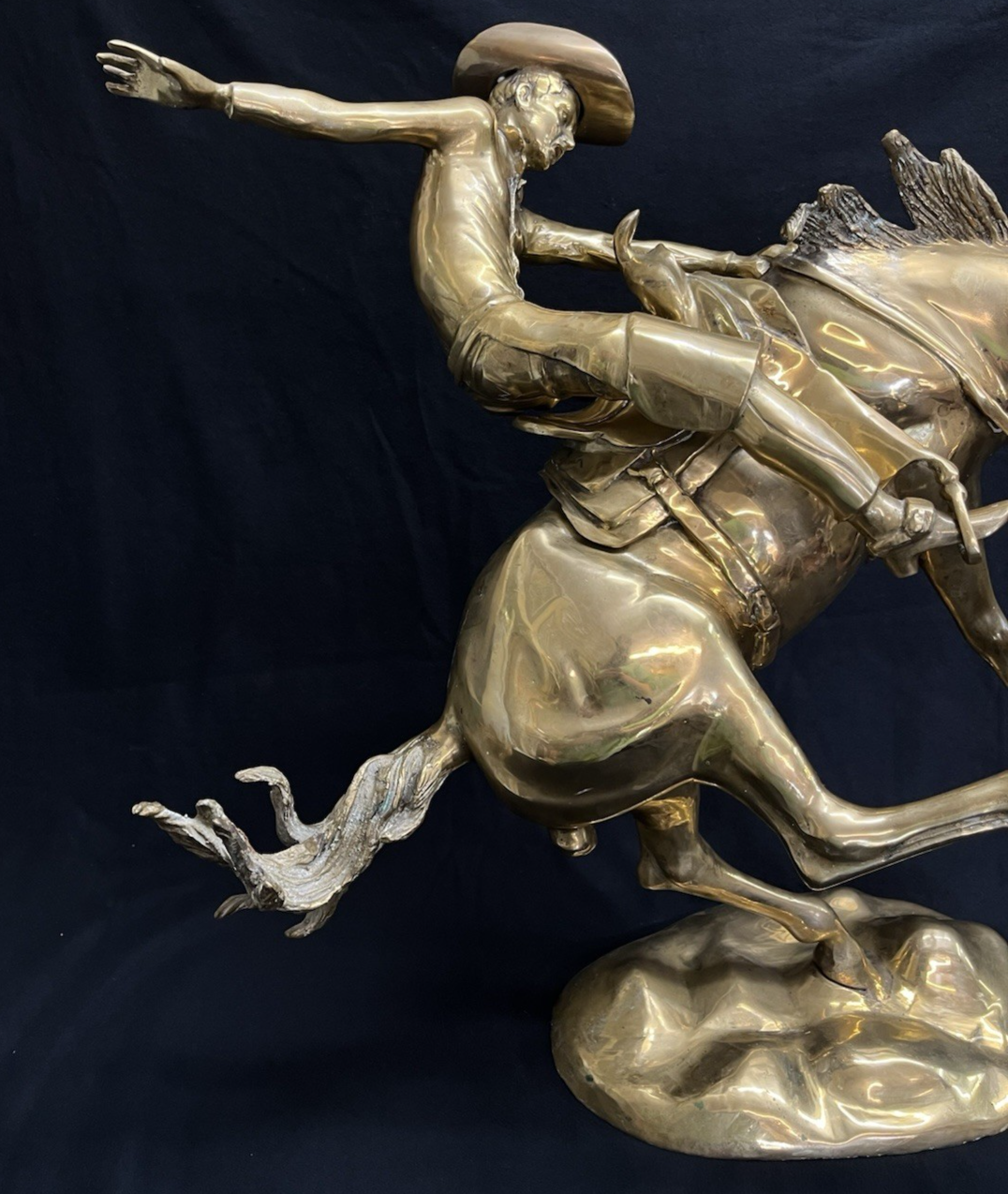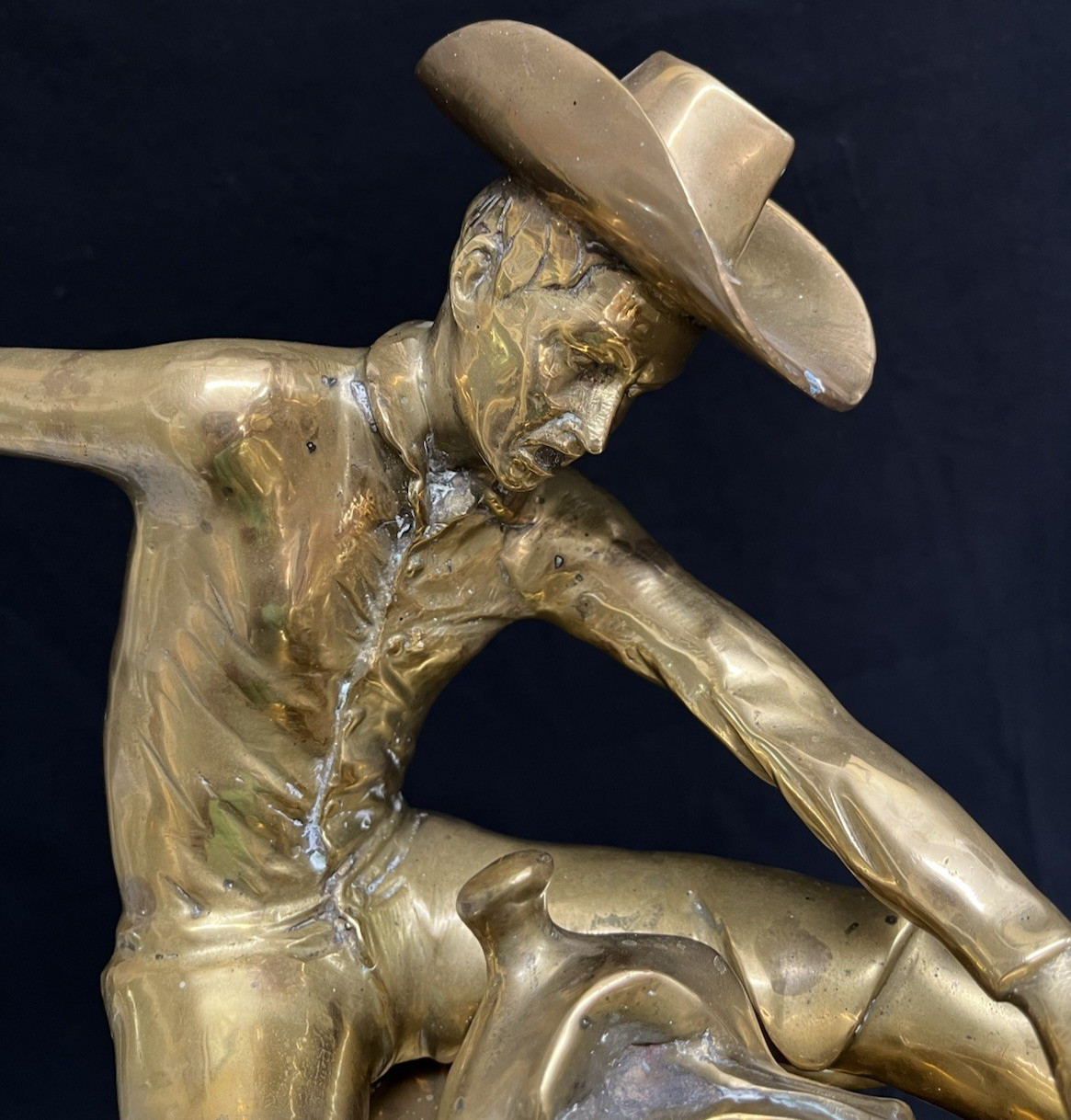 Polished Brass Wild Bucking Bronco w/ Removable Cowboy Rider Sculpture 21"