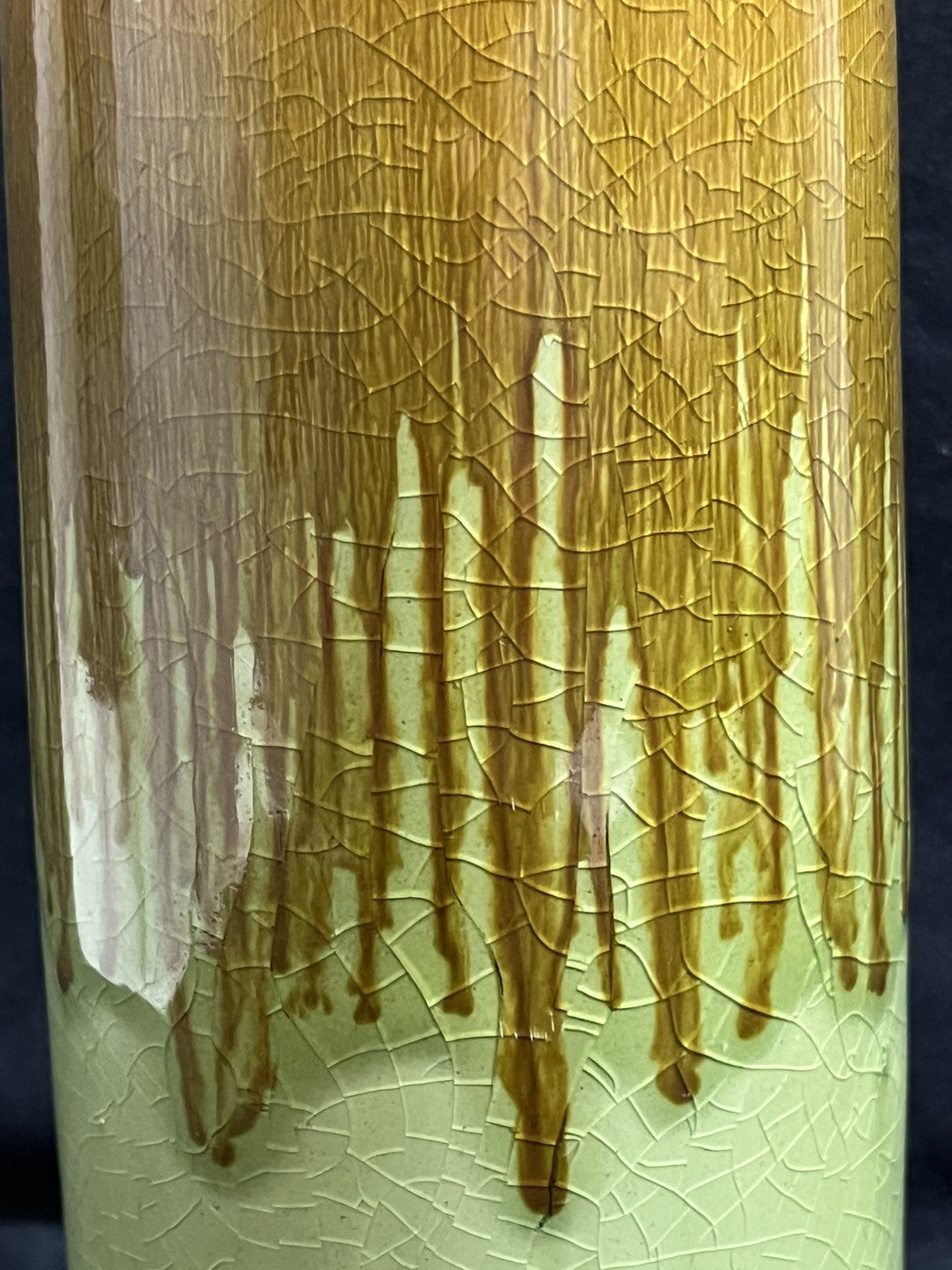 Pottery Green and Brown Drip Glaze Vase 20.5" Tall