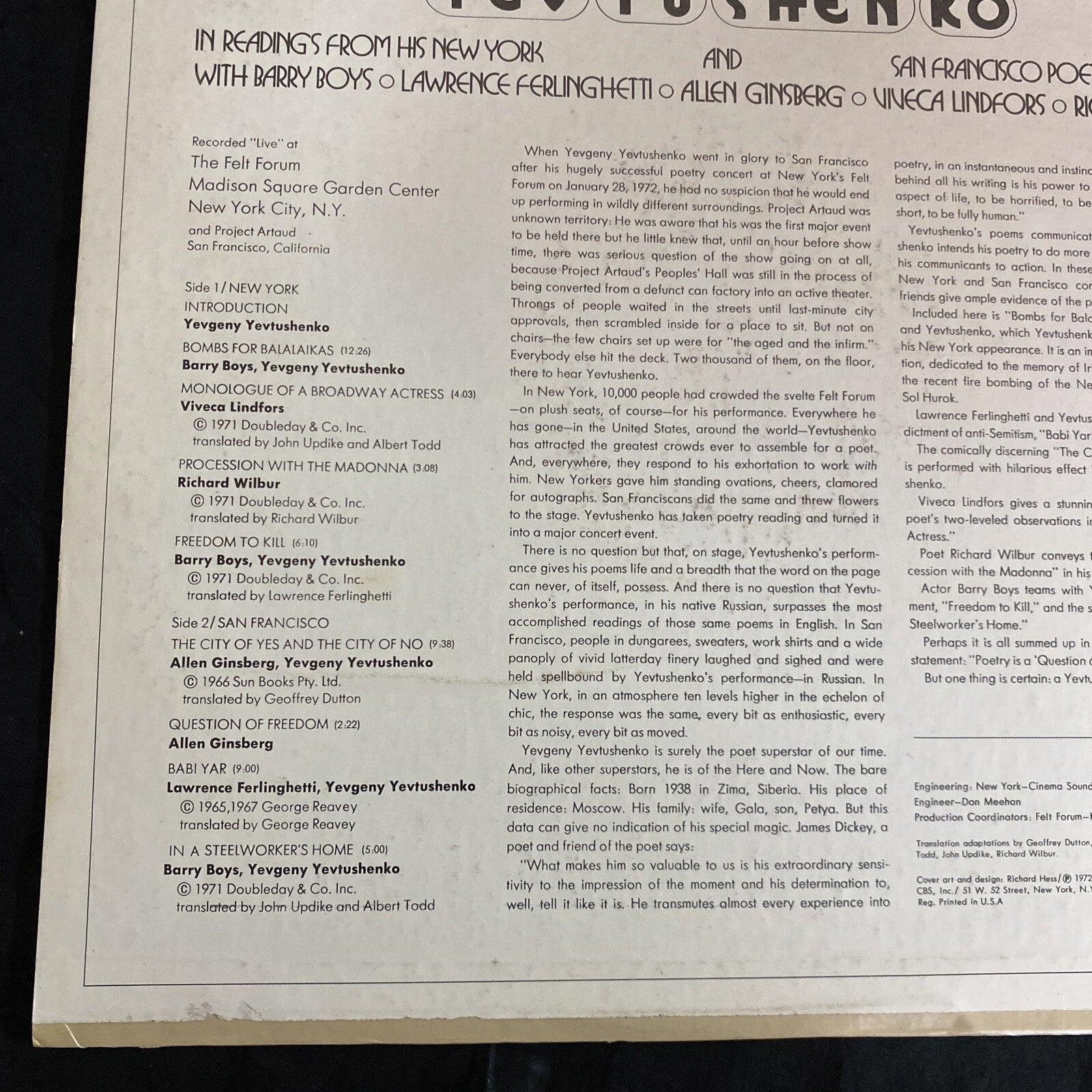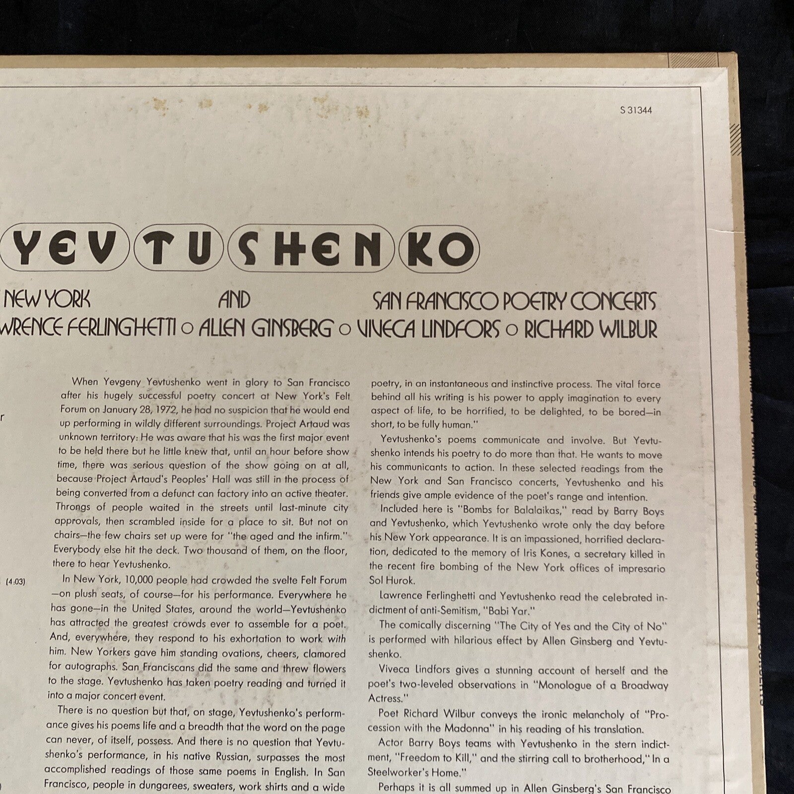 Don't miss out on the chance to own this one-of-a-kind promotional edition of Yevtushenko's Readings From His New York And San Francisco Poetry Concerts.
