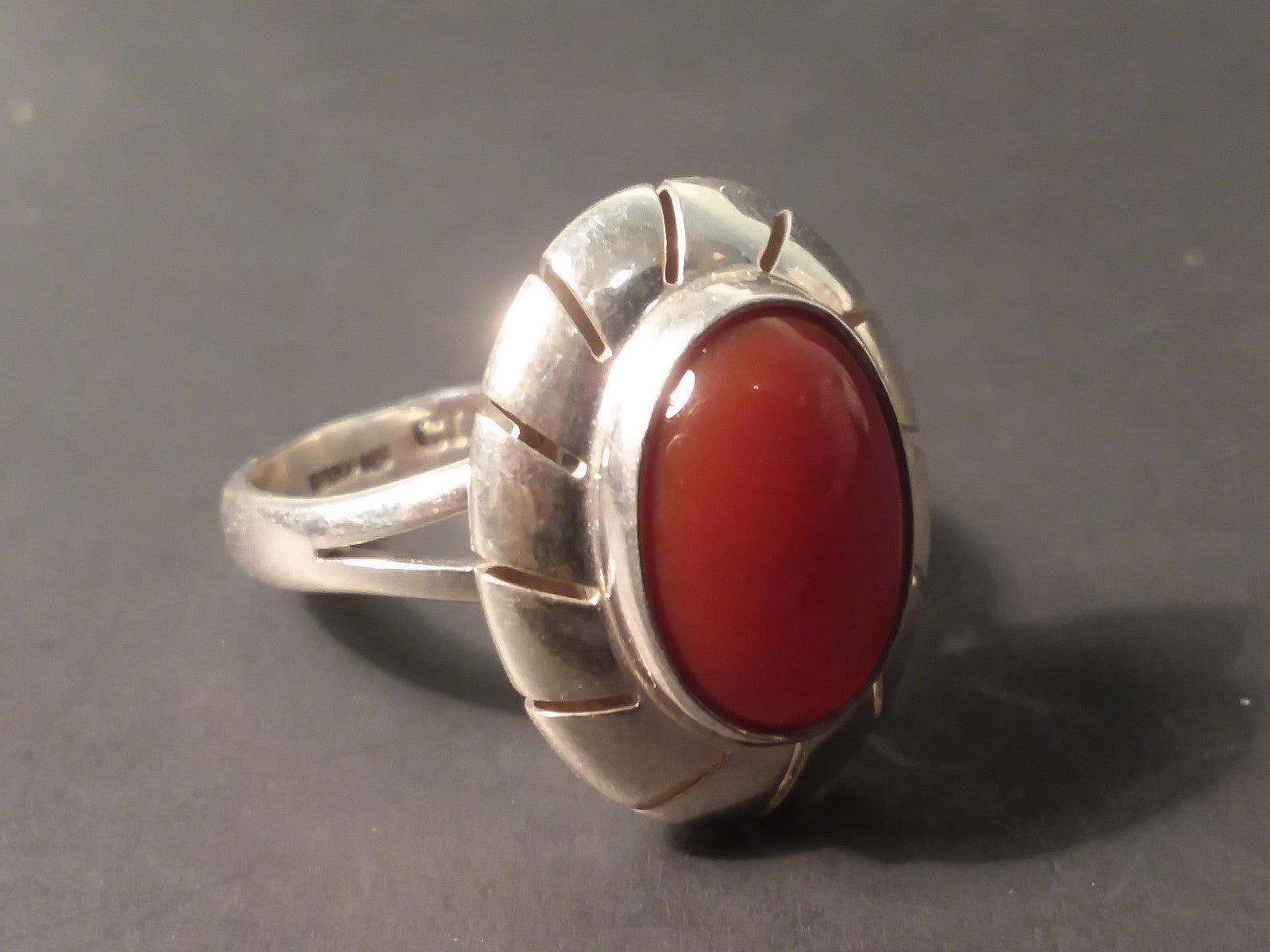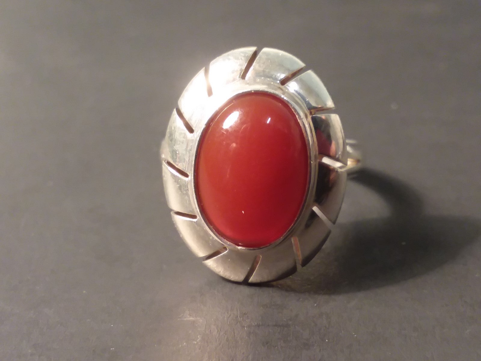 Red Carnelian Sterling Silver Ring Mexico CII Sz 9.75 5.6g