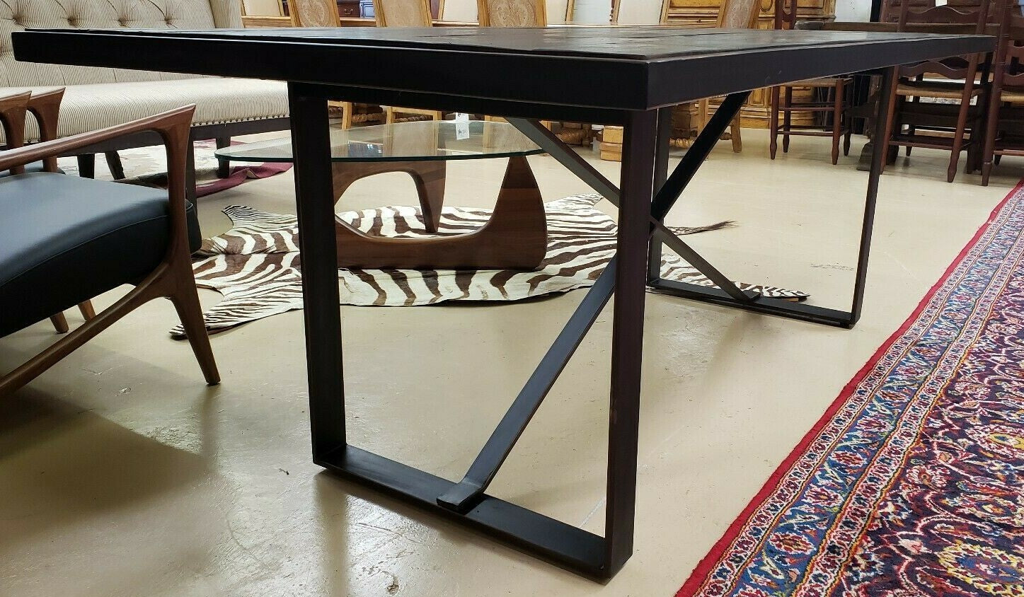Restoration Hardware Style Metal Reclaimed Wood Table X Stretcher Dining Table