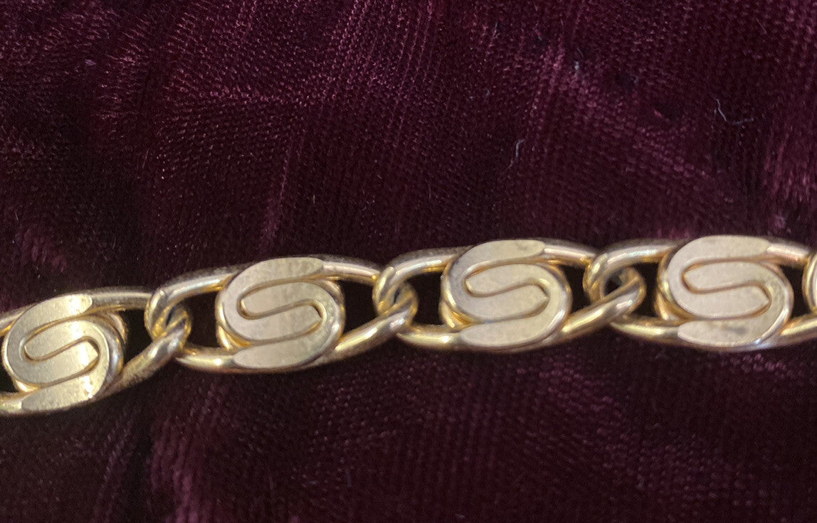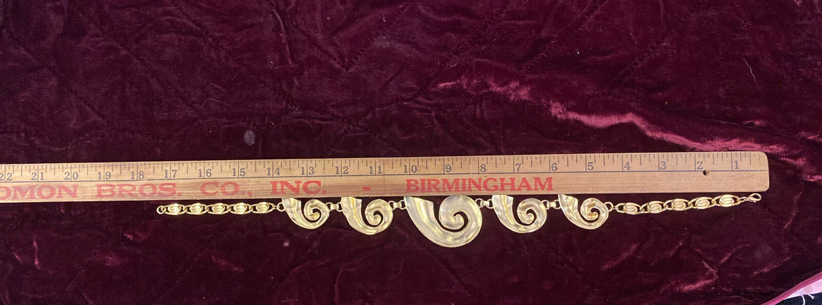 Offered for sale is a retro 17" gold plated necklace with matching clip earrings 1 3/4 " long. No signature, very well made from the 60's.