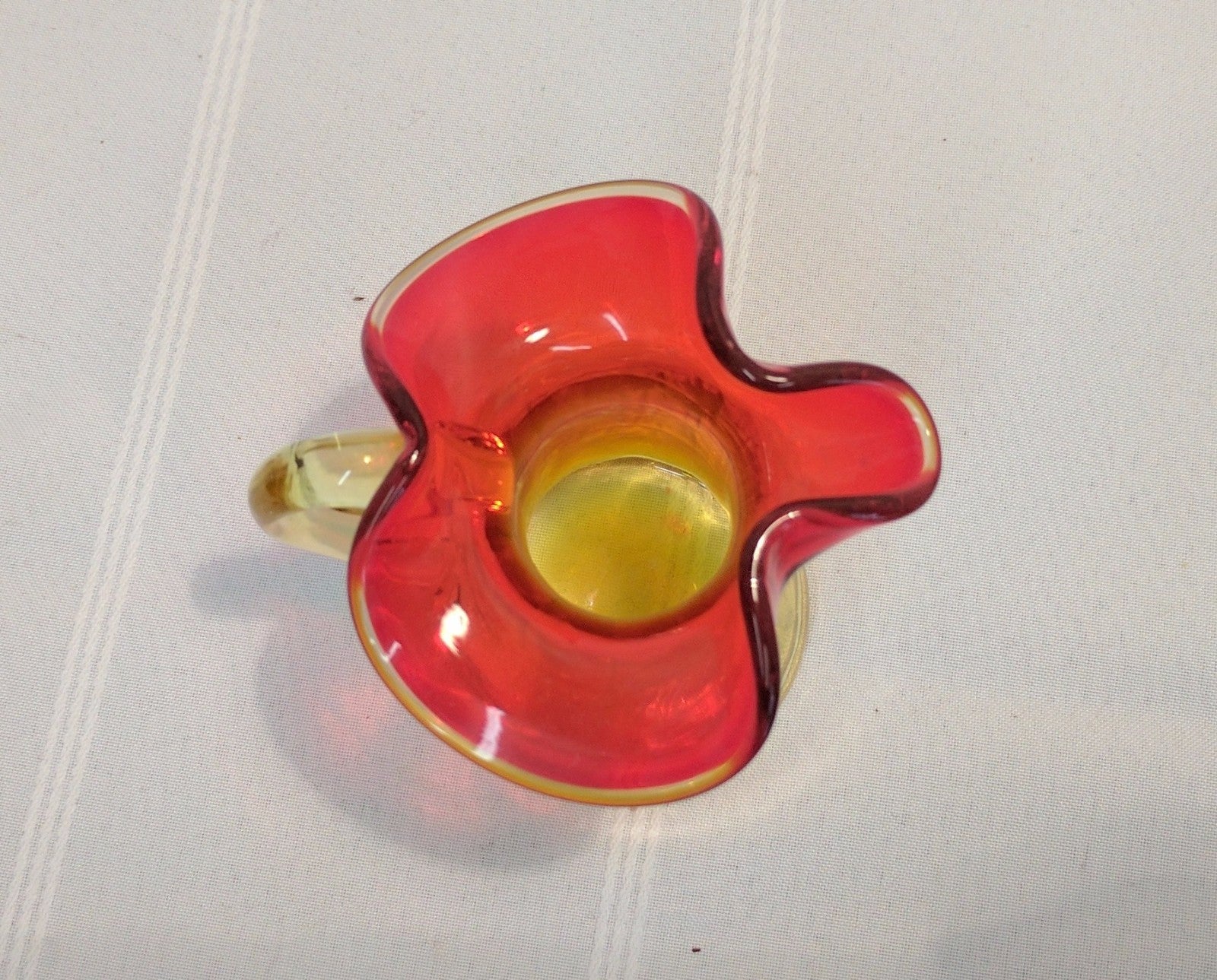 Retro Mid Century Modern Rainbow Art Glass Amberina Pitcher 4.25'' Midcentury