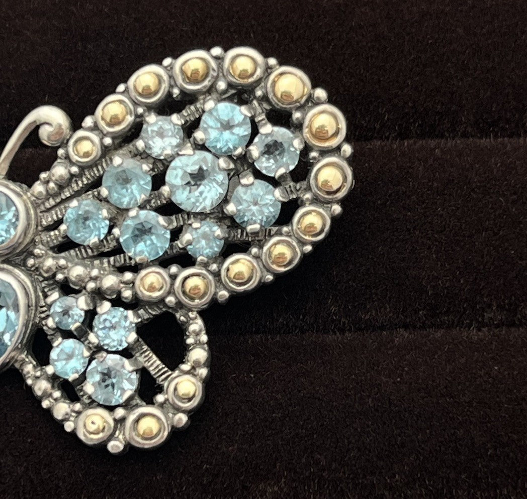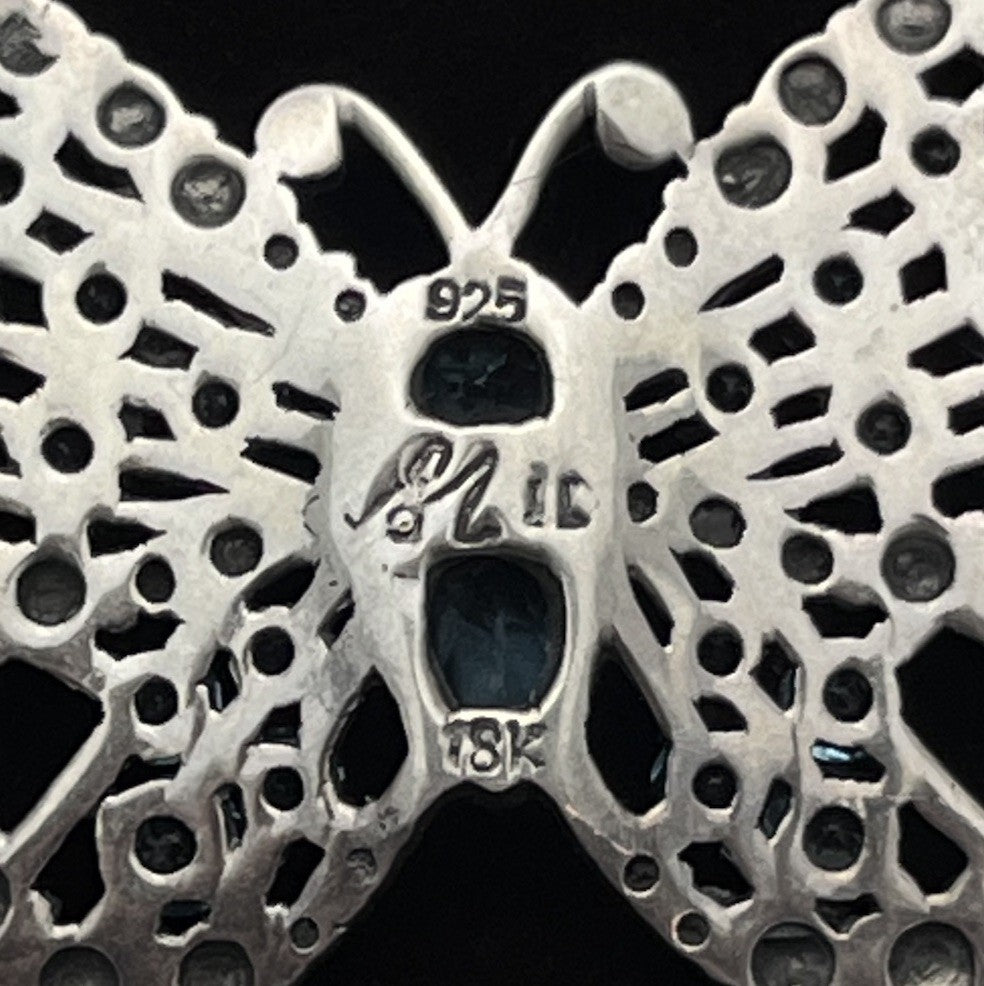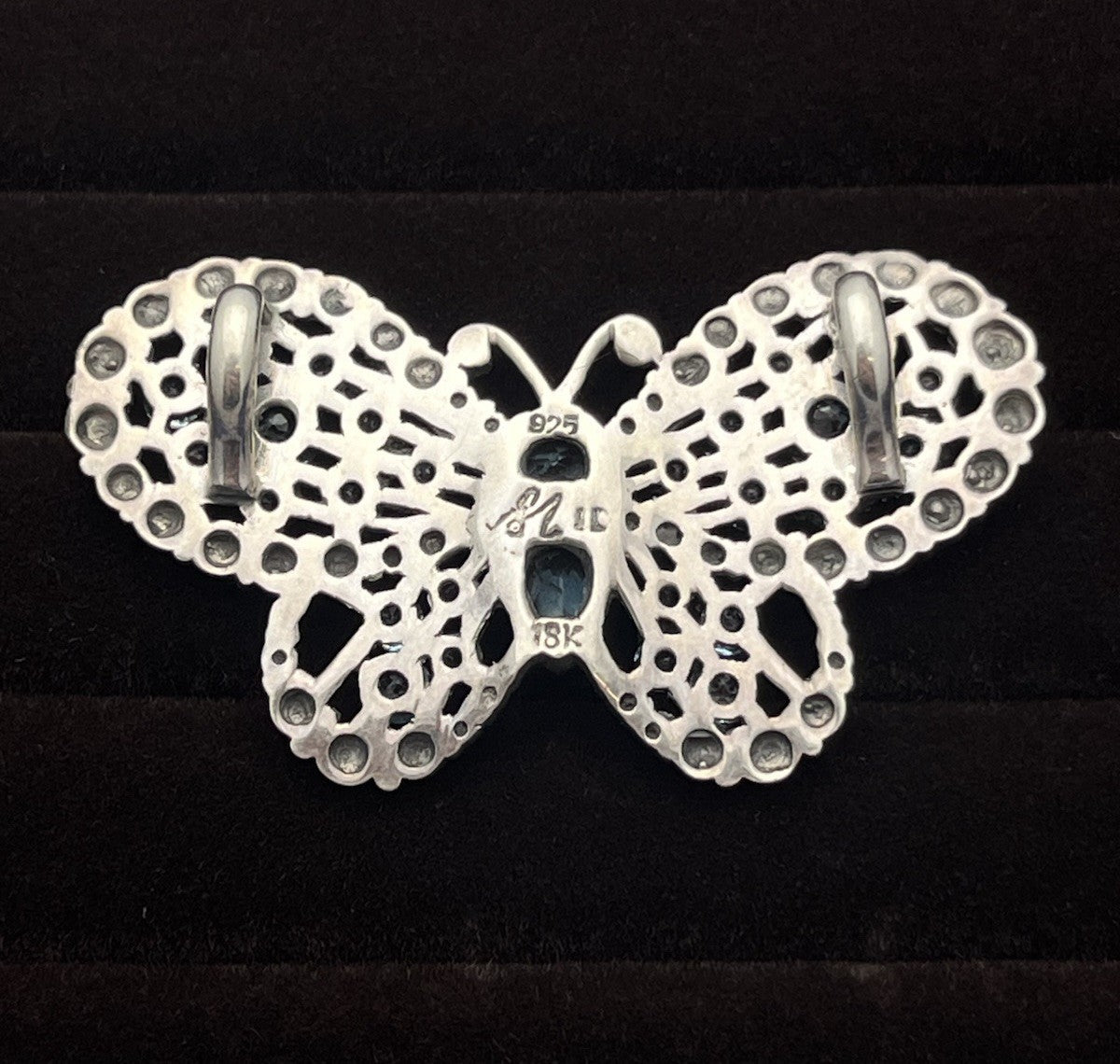 Robert Manse 18K Yellow Gold & Sterling Butterfly Pendant 9.3g Blue Topaz