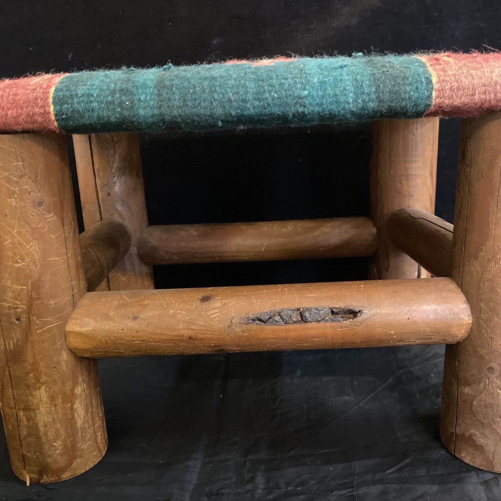 Rustic 11" Log Stool Handtied Navajo Cover Handmade Southwest Decor