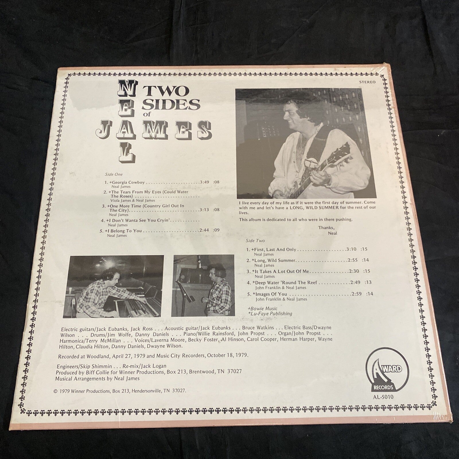 Experience the soulful and funky rhythms of Neal James' "Two Sides Of Neal James" LP. This 12" record features 33 RPM of unopened and sealed vinyl that promises to deliver a pristine audio quality. The album is a private collection with the AL-5010 catalog number.