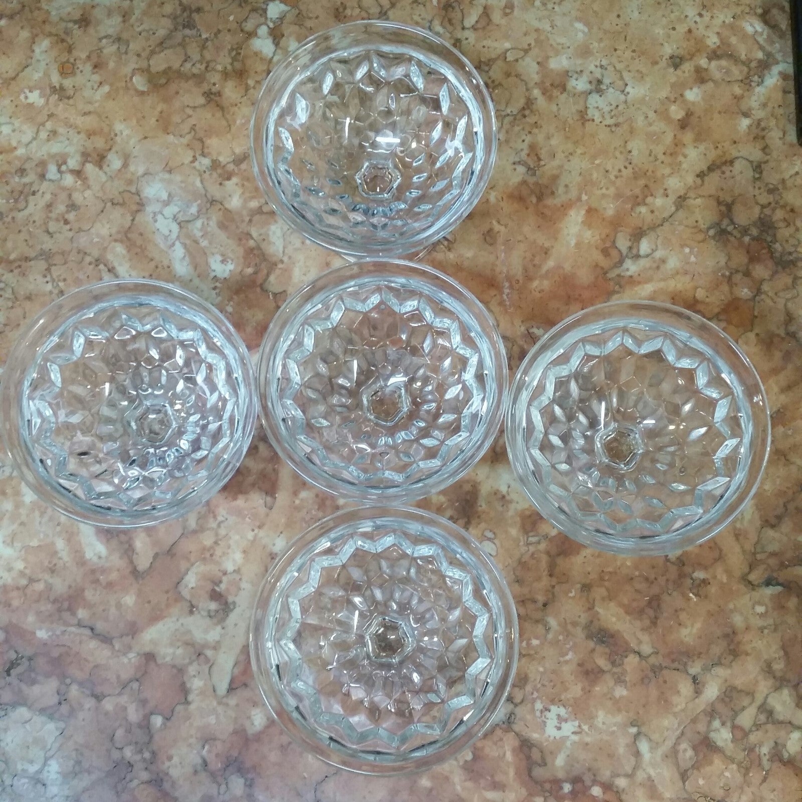Set of 5 Fostoria American Crystal Pr Low Sherbets 5 oz Glasses H 3 1/2"