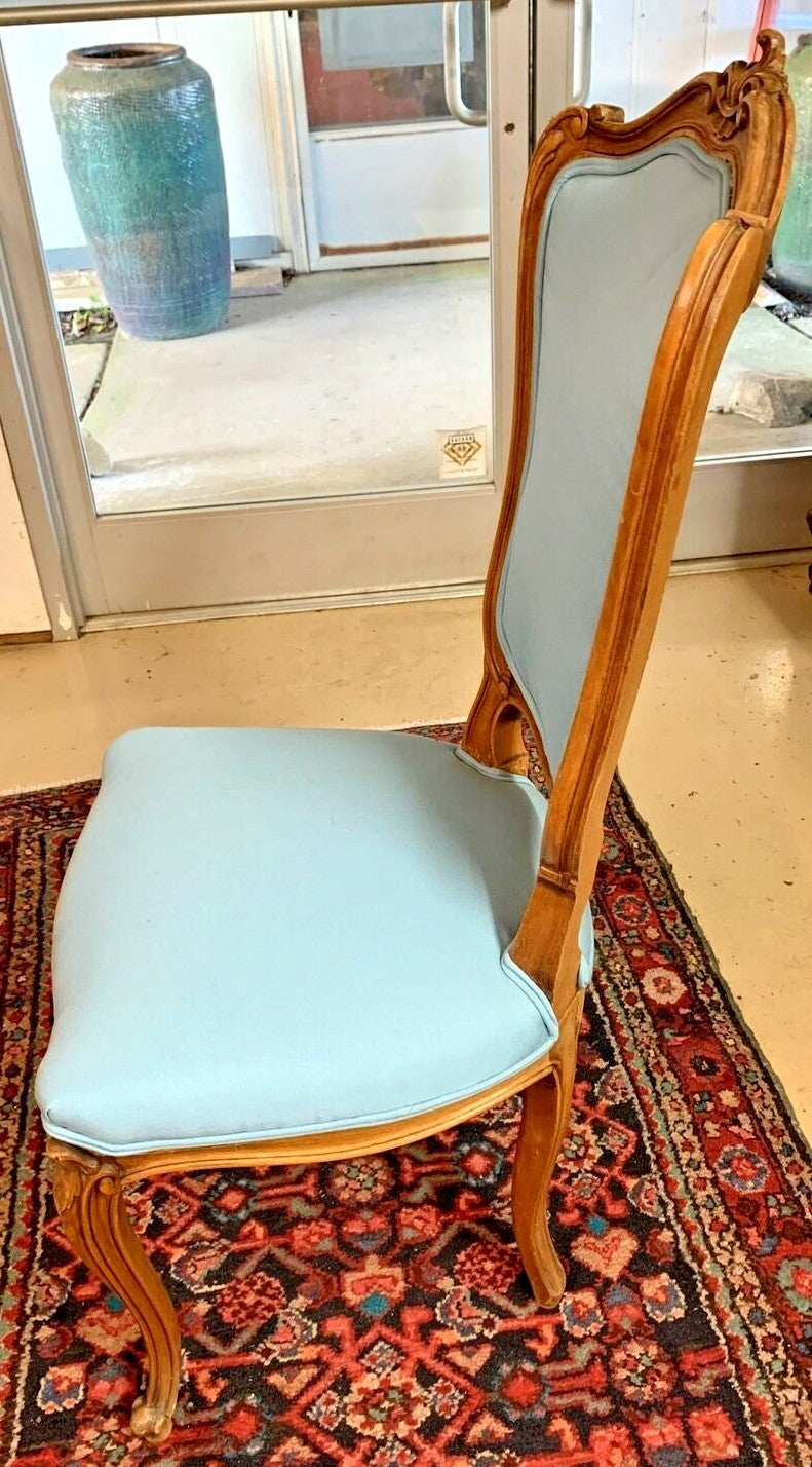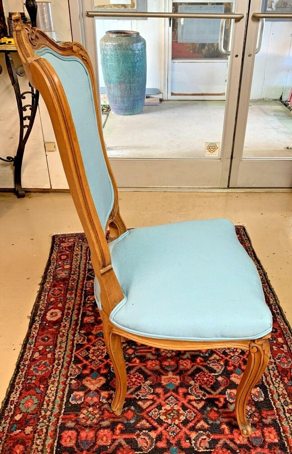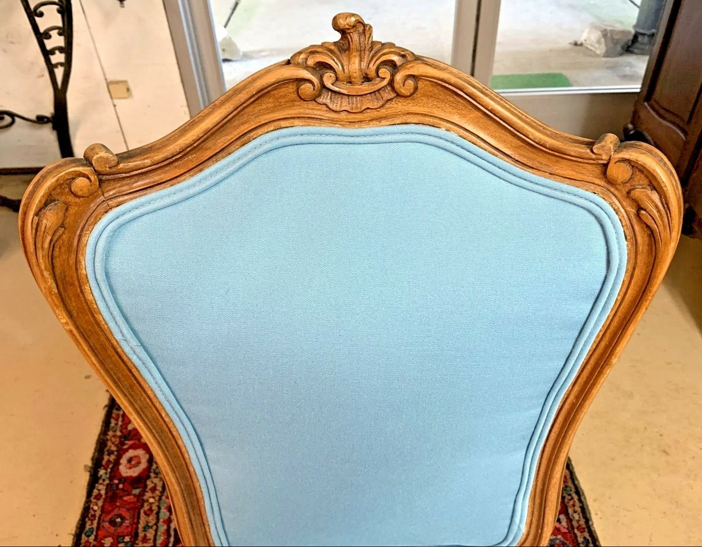 Offered for sale is a Set of 6 Louis XV style French Walnut carved side chairs with custom upholstery. 43"h x 20"w x 21"d (Seat 19 1/2"h)