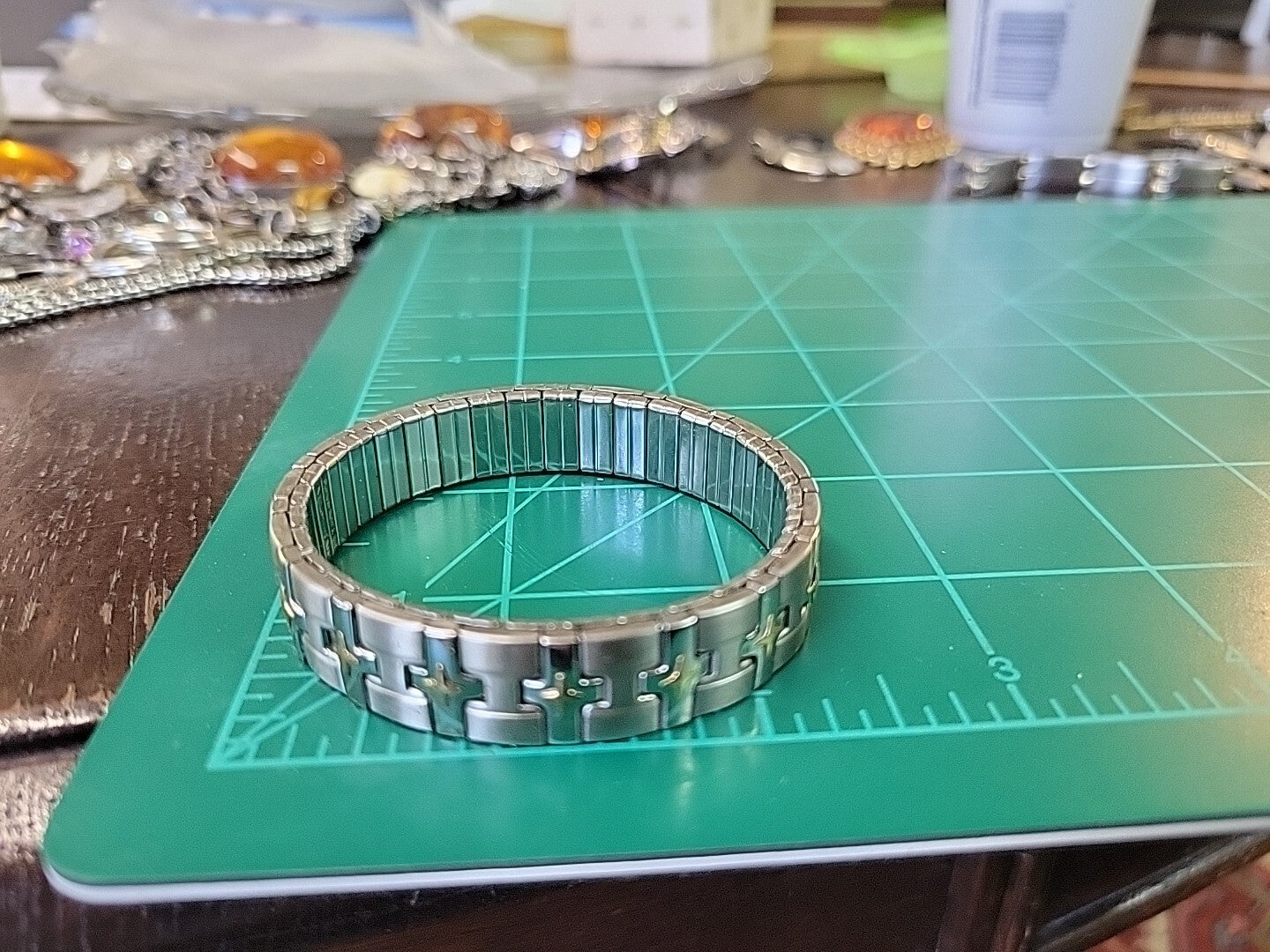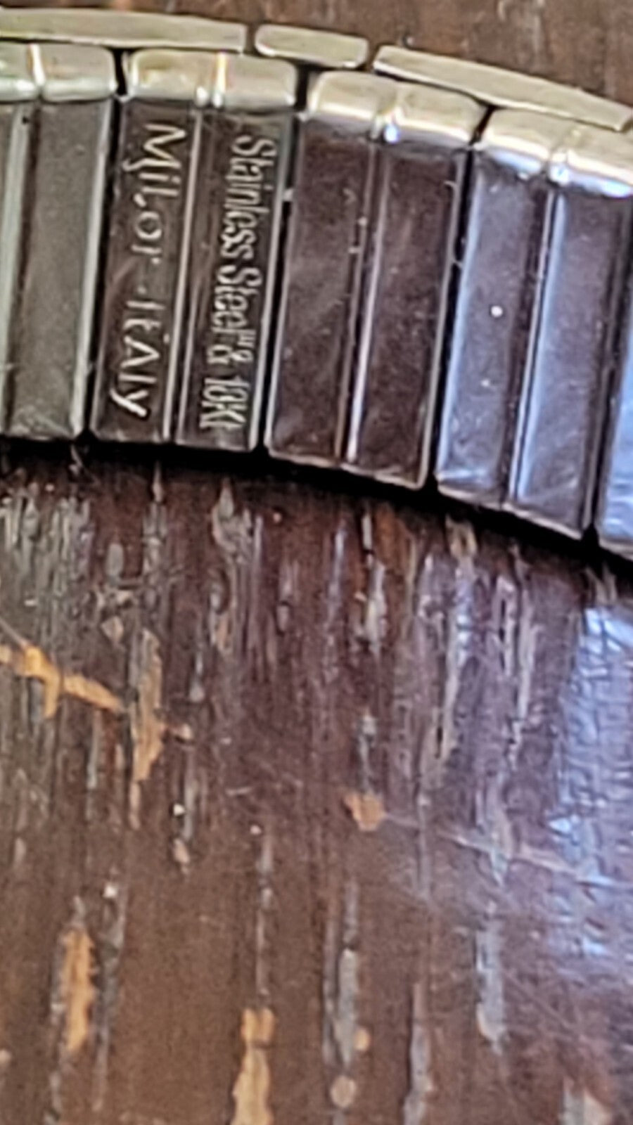 SIGNED MILOR ITALY STAINLESS STEEL w 18K YELLOW GOLD STRETCHY BANGLE BRACELET